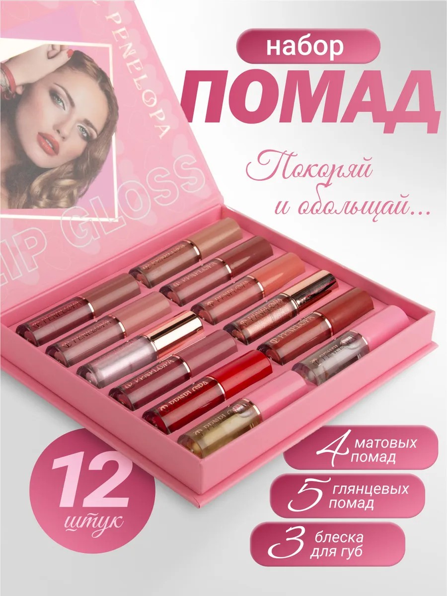 Помада для губ в наборе создана для безупречного макияжа и завершения потрясающего стиля женщин. Набор нюдовых, глянцевых помад с блеском имеет приятную кремовую текстуру. 12 оттенков жидкой матовой помадки не сушит и остается стойкой на протяжение всего дня. Подходит как ежедневная, не скатывается. Нюдовая нейтральная палитра позволяет подобрать идеальный образа - от естественного дневного до вечернего.