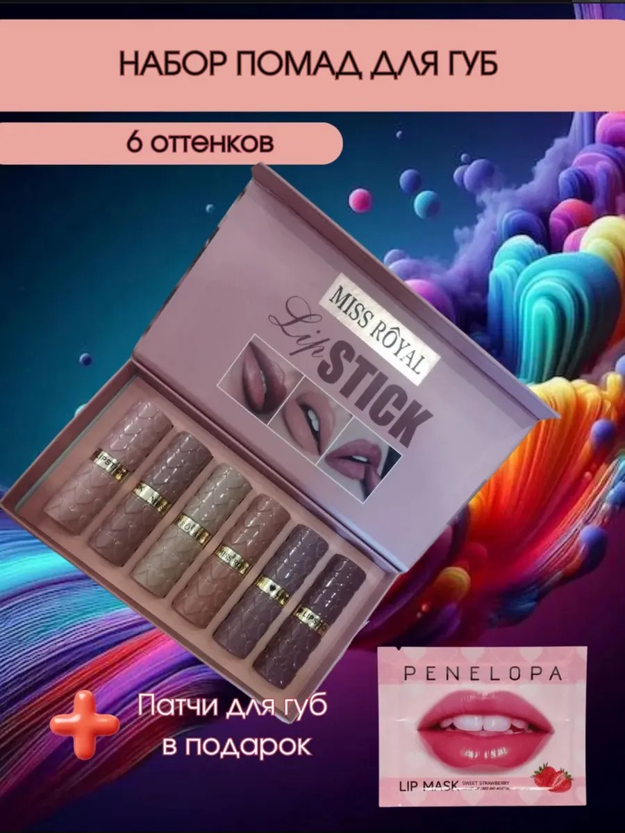 | Package contents | Set of matte lipsticks in a box - 6 pieces + 1 lip patch; Lipsticks in a box - 6 pieces |
