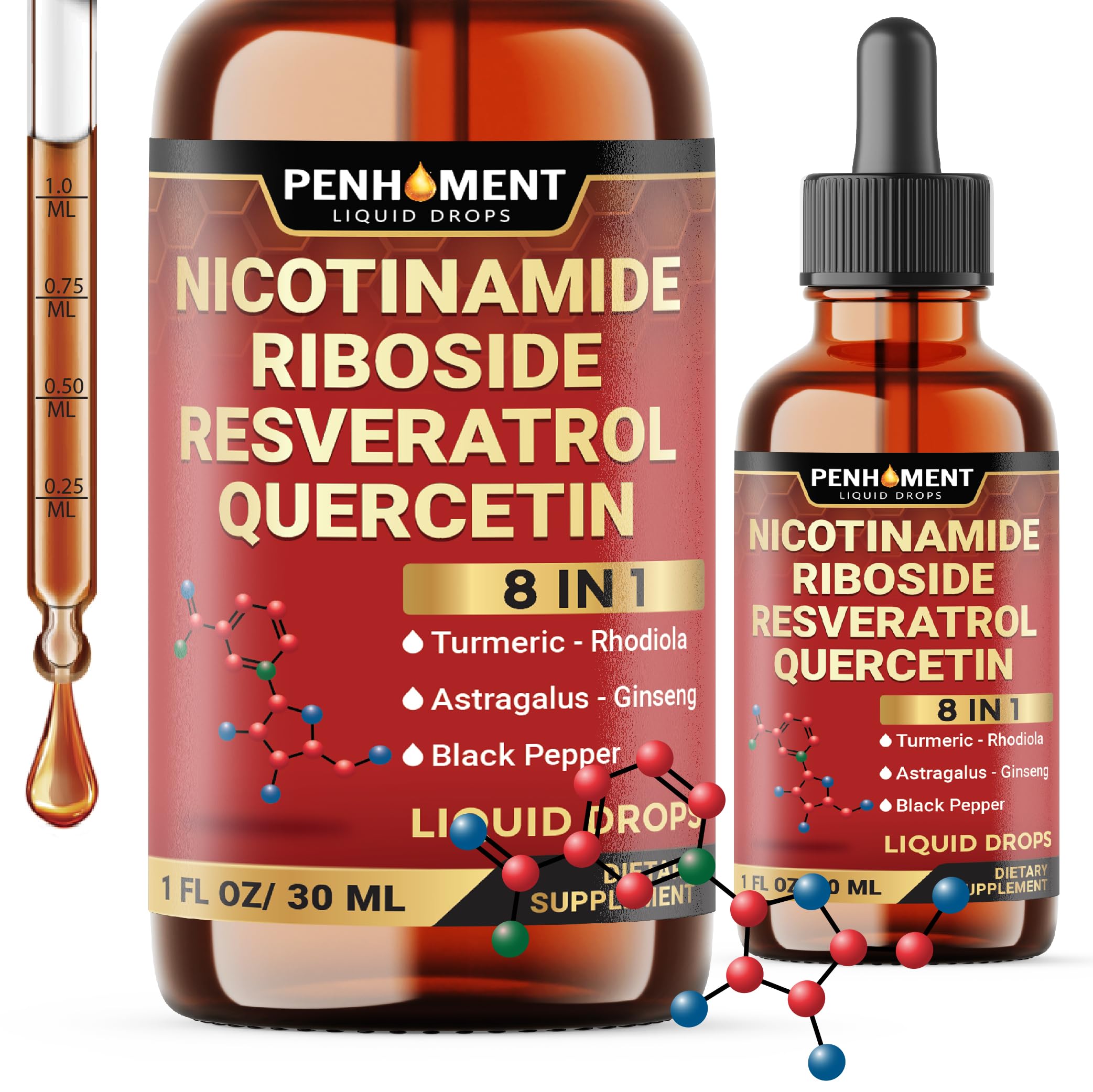 Penhoment 8in1 NAD+ Liquid Drops w/Nicotinamide Riboside NR 900mg, Quercetin 250mg, Trans-resveratrol 250mg and 5 More Herbals - Cellular Energy & Repair, Vitality, Healthy Aging - 2 Month Supply