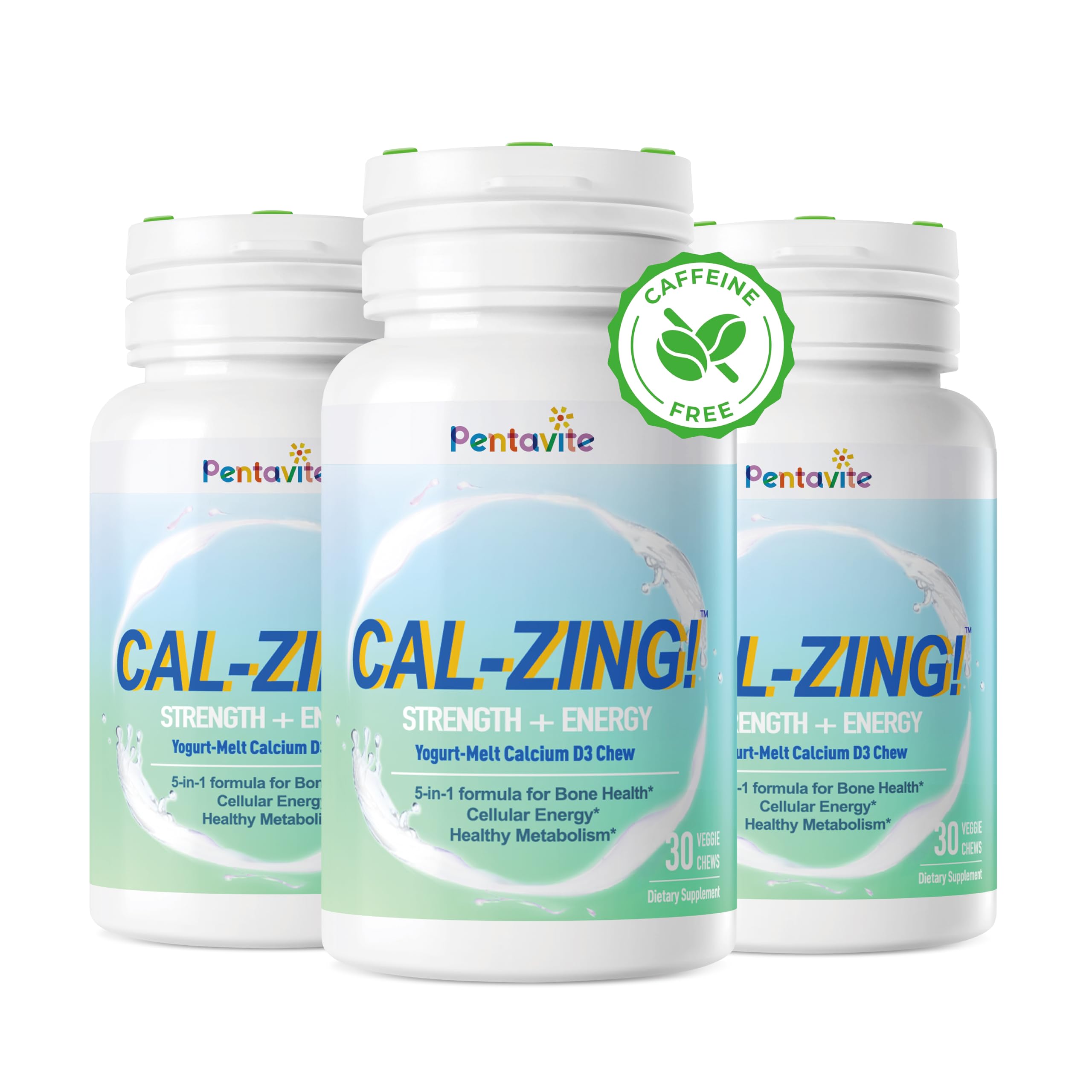PENTAVITE: SCIENCE. SUNSHINE. SINCE 1940 - Pentavite combines proven nutritional science with modern wellness needs. Founded by an Australian pharmacist, we deliver functional nutrition with a fun twist—so you can thrive every day. Every batch is manufactured right here in a U.S. FDA and Australia's TGA registered facility, ensuring premium quality and safety you can trust. MELTS ON YOUR TONGUE, NOT IN YOUR THROAT - Say goodbye to hard-to-swallow pills! Our soft, creamy chews dissolve like a yogurt-like treat right on your tongue. No gulping, no chalky aftertaste—just an easy and great-tasting calcium supplement that's truly easy to love. NATURAL ENERGY WITHOUT JITTERS - Enjoy a clean, caffeine-free lift thanks to our dual-action blend. Taurine delivers an instant spark of focus, while B vitamins provide sustained fuel throughout your day. No crashes, no jitters—just smooth, natural energy to help you stay on your game. SMART CALCIUM FOR DAILY BALANCE - One chew equals the calcium in a full glass of milk—but without the extra hormones. It's a simple, clean way to give your body the bone-supporting calcium it needs, perfect for your everyday balance. Think of it as your easy, on-the-go calcium boost. THE 5-IN-1 FABULOUS INSIDE - We've packed every chew with what your body truly needs: Calcium for bones, teeth, muscles nerves Vitamin D3 to help absorb calcium and brighten your day B1 to turn food into lasting energy B2 to support energy and metabolism and Taurine for natural, caffeine-free focus. It's a full-circle wellness boost in every bite. YOUR ZING, CREAMY STRONG 5-IN-1 CALCIUM D3 CHEWS - Get strong bones teeth, laser focus, cellular energy, and a healthy metabolism—all in one yummy chew. Our delicious yogurt-melts make getting your calcium a treat, with no chalky pills or "meh" aftertaste. A tasty daily habit you'll actually enjoy!.