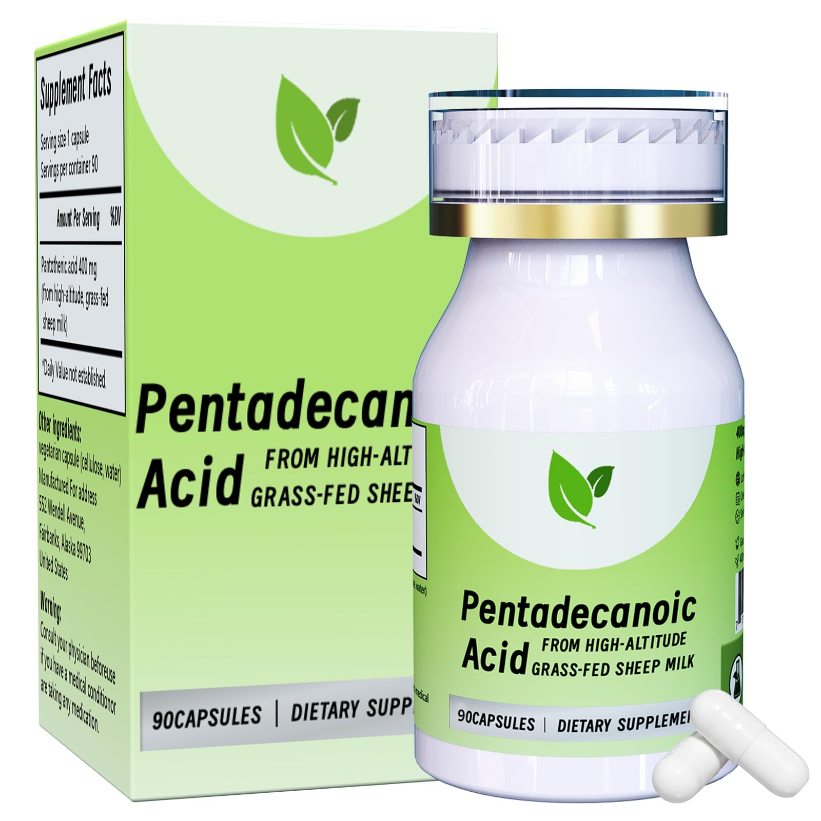Pentadecanoic Acid C15:0 ,please store properly in a cool and dry place. Pentadecanoic Acid C15:0, 90 capsules per bottle,400mg. Strict quality control, high-altitude sheep milk sourced.