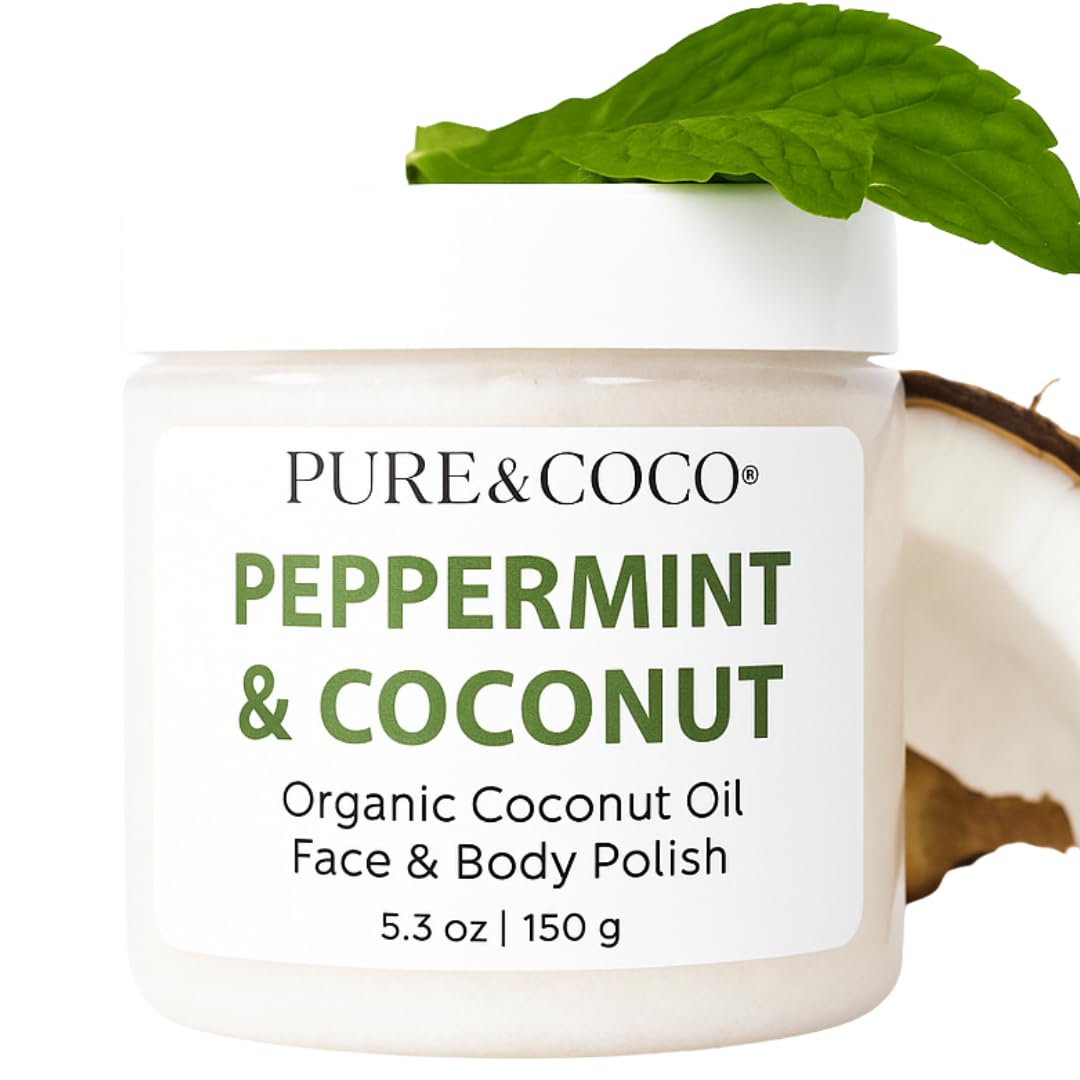 Peppermint & Coconut Organic Coconut Oil Face And Body Polish A Gentle Exfoliating Face Scrub And Sugar Scrub For Body Anti Aging Exfoliator With A Moisturizing Facial Exfoliator For Sensitive Skin