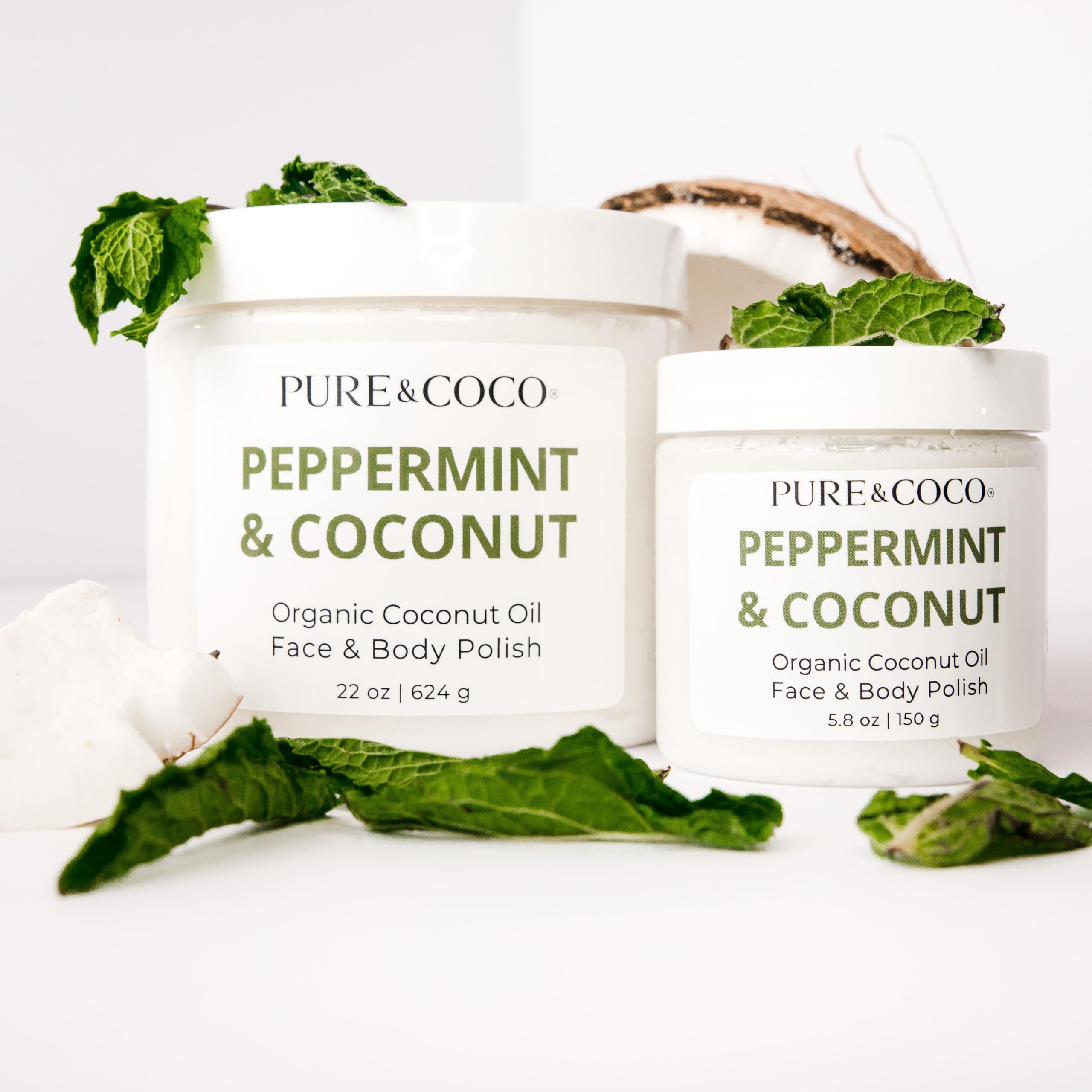 Peppermint & Coconut Organic Coconut Oil Face & Body Polishes Moisturizing Oil Daily Face Scrubs Exfoliating Hydrating Body Scrubs for Dry Skin and Leg Exfoliator for A Natural Youthful Glow All Over