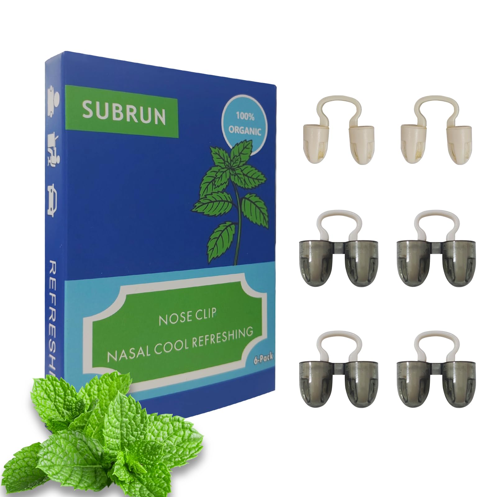 Convenient 6-Pack for On-the-Go Use The hygienic set includes three individually wrapped nose clips, ready when you need them. Keep one in your work bag, another in your car, and a spare in your pocket - ensuring fresh breathing is always within reach. The compact, lightweight design makes them ideal travel companions and practical stocking stuffers. ? 48-Hour Continuous Refreshment Each clip provides long-lasting relief with up to 48 hours of consistent minty freshness. Our advanced slow-release technology ensures effective performance throughout your entire workday or travel period, while the discreet low-profile design remains virtually unnoticeable. Essential Solution for Mask Wearers Specifically developed to improve the mask-wearing experience, these clips are trusted by healthcare professionals, frequent travelers, and anyone who wears masks for extended periods. The cooling vapors help neutralize odors and make breathing more comfortable, transforming your daily mask routine. (For optimal hygiene, each clip is designed for single-user use.). ✓ Ergonomic Design for All-Day Comfort Engineered for maximum effectiveness, SUBRUN's specialized contour fits your nose perfectly, maintaining optimal contact for continuous freshness. The comfortable, non-irritating design stays securely in place during work, travel, or physical activity, unlike generic nose clips that slip or cause discomfort. Instant Refreshment with Natural Peppermint Experience immediate revitalization with SUBRUN's nose clips infused with premium peppermint oil. Our innovative design delivers a dual-action effect - gently opening nasal passages while releg refreshing menthol vapors to combat fatigue, mask discomfort, and stale air during extended wear.
