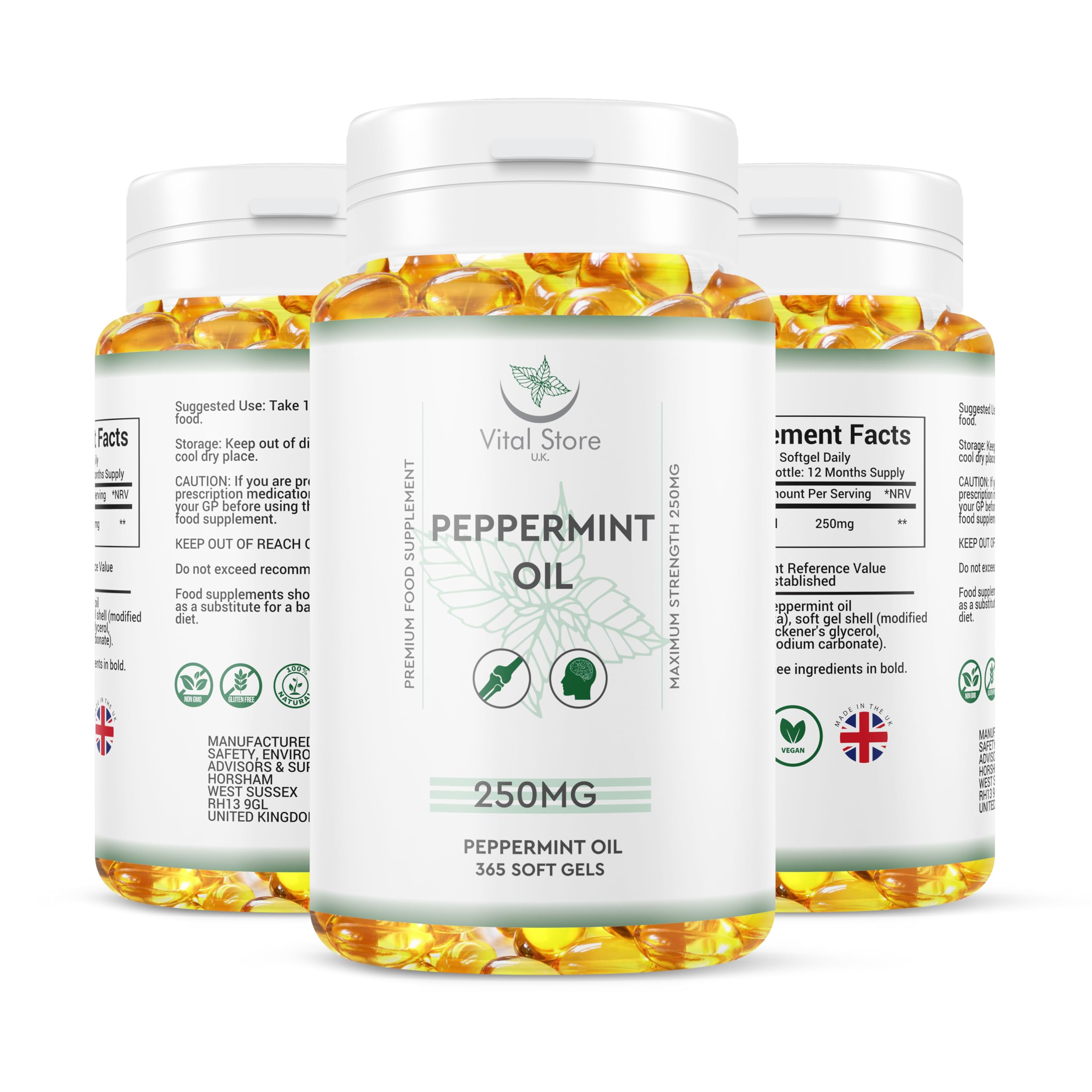 Peppermint Oil 250MG - 1 Year Supply 365 Vegan Peppermint Oil Softgels - High Strength Peppermint Vegan Softgels 365ct