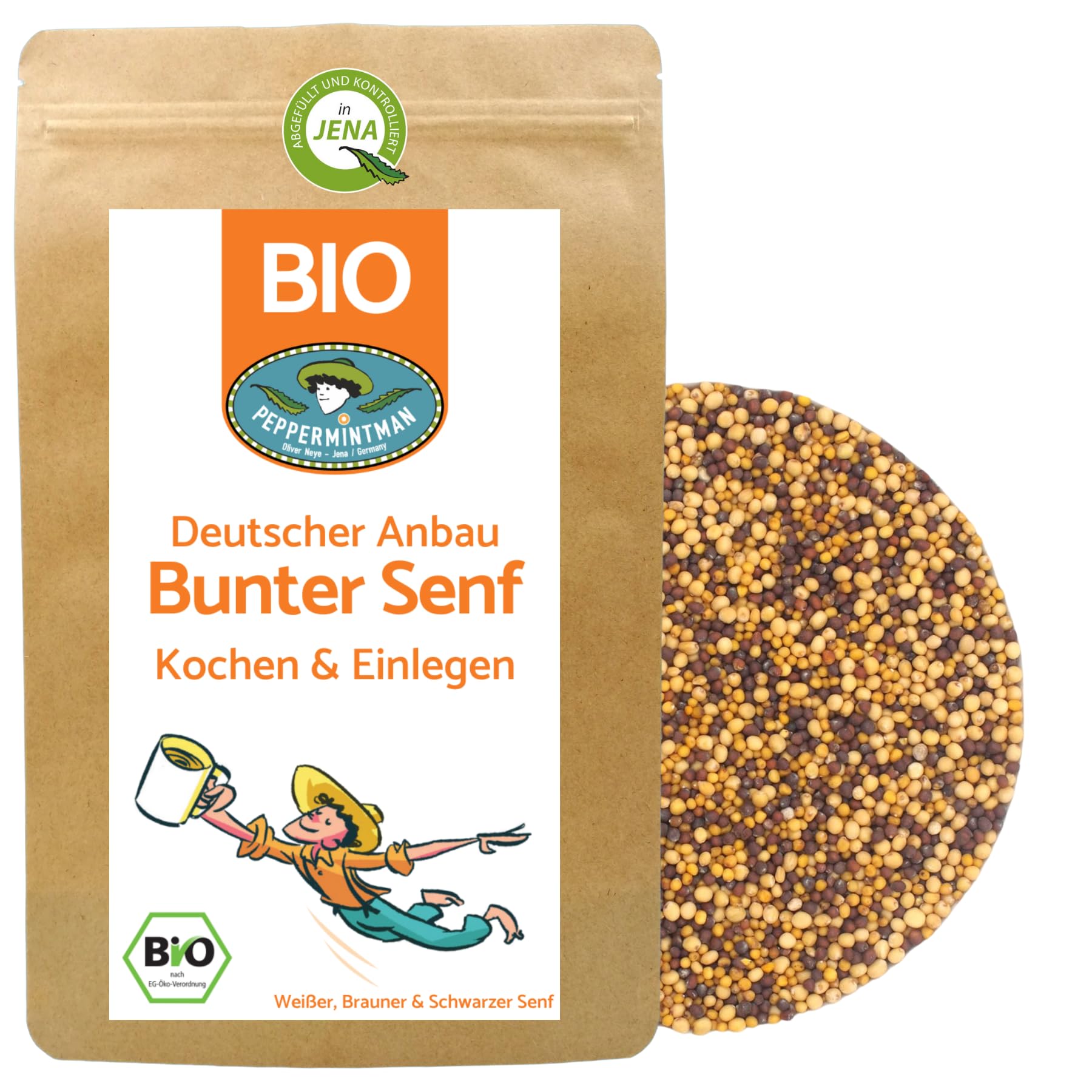 Moutarde trio coloré bio 1 kg - Culture allemande - Mélange de graines de moutarde noir et marron et jaune - Assaisonnement Préparation de moutarde Engrais vert - PEPPERMINTMAN
