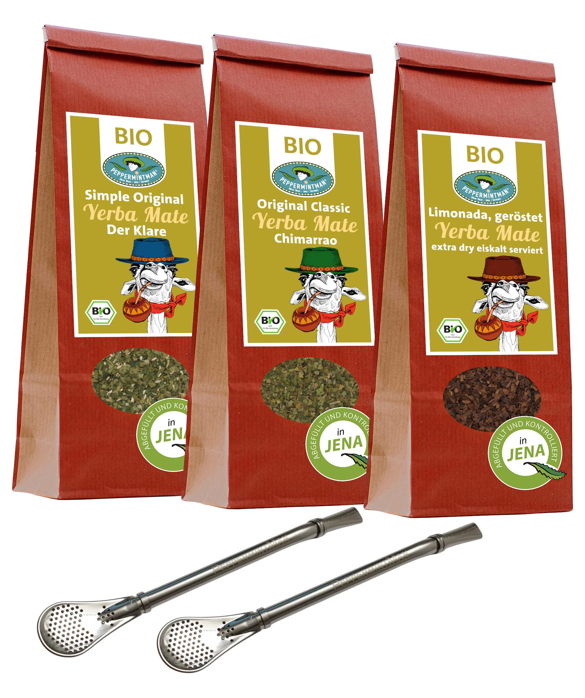 PEPPERMINTMAN Pack of 3 x 500g Green Chimarr o Medium Roast Cut & Green Medium Cut + 2 free bombillas by the Brazilian family business PeppermintMan