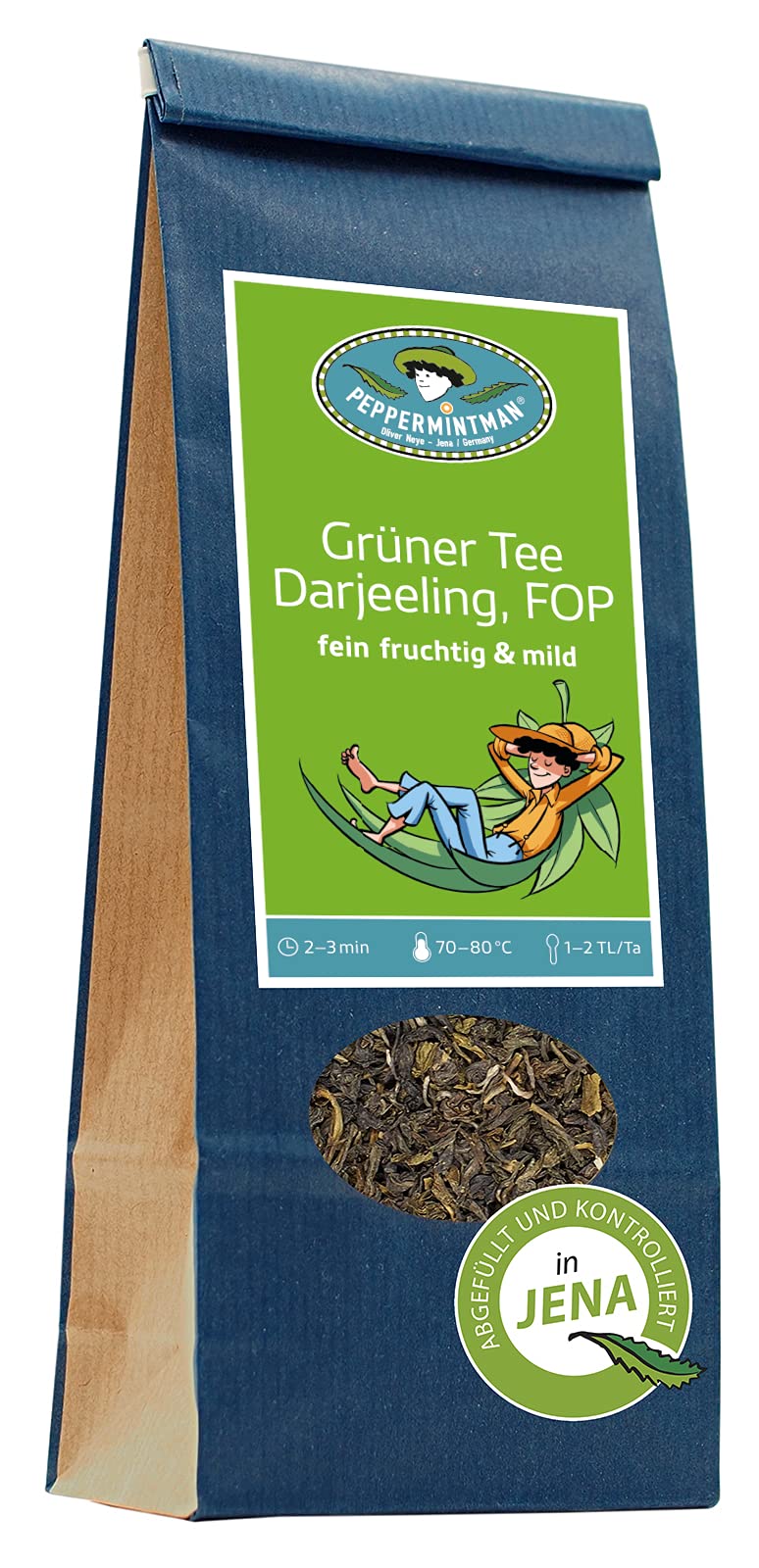 Peppermintman Thé vert Darjeeling 60 g – Thé populaire avec note florale et couleur vert clair – Le Darjeeling vert vient de l'Himalaya