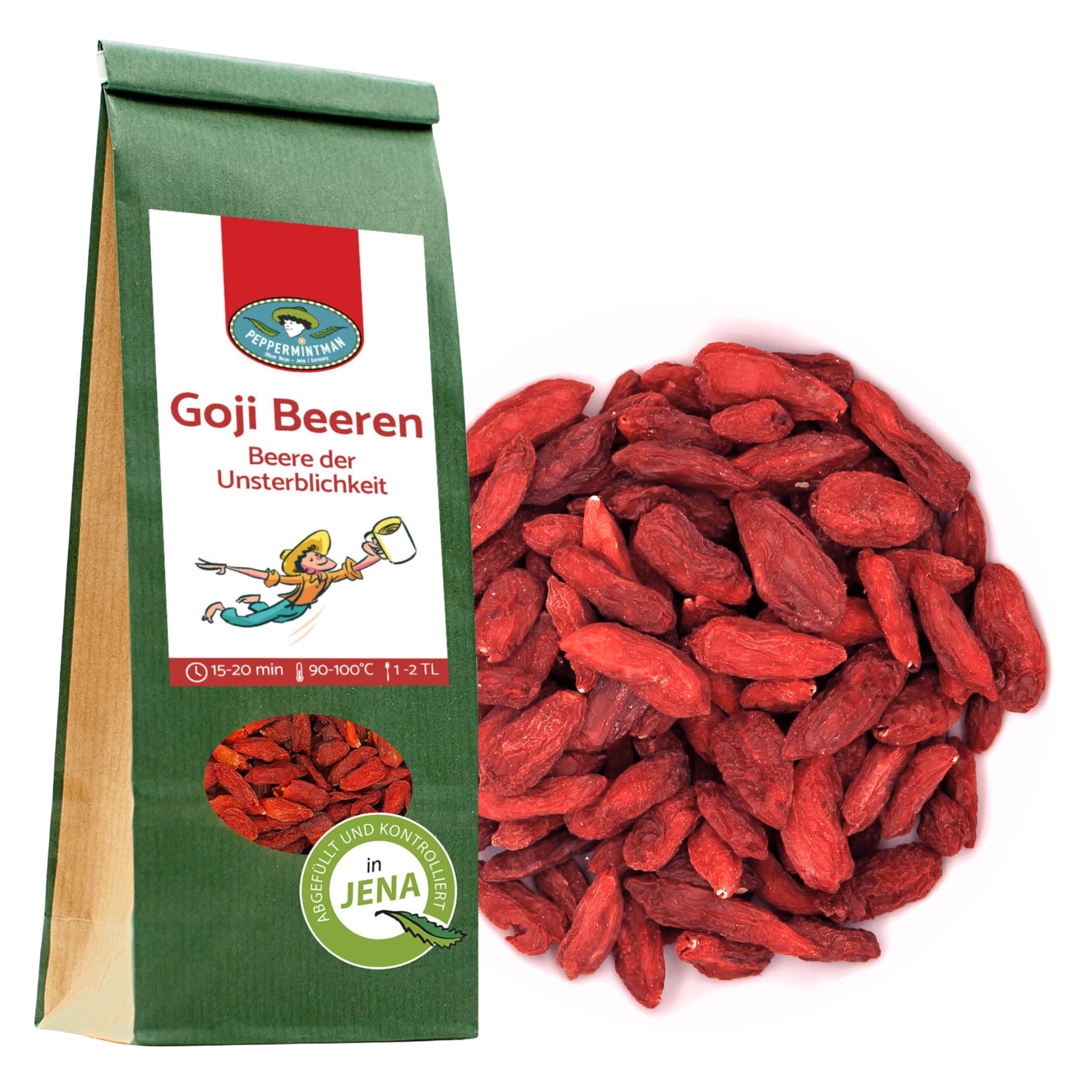 PEPPERMINTMAN Goji Baies séchées - Goji sucré et fruité - Fruit d'épinards, baies porte-bonheur (60 g)