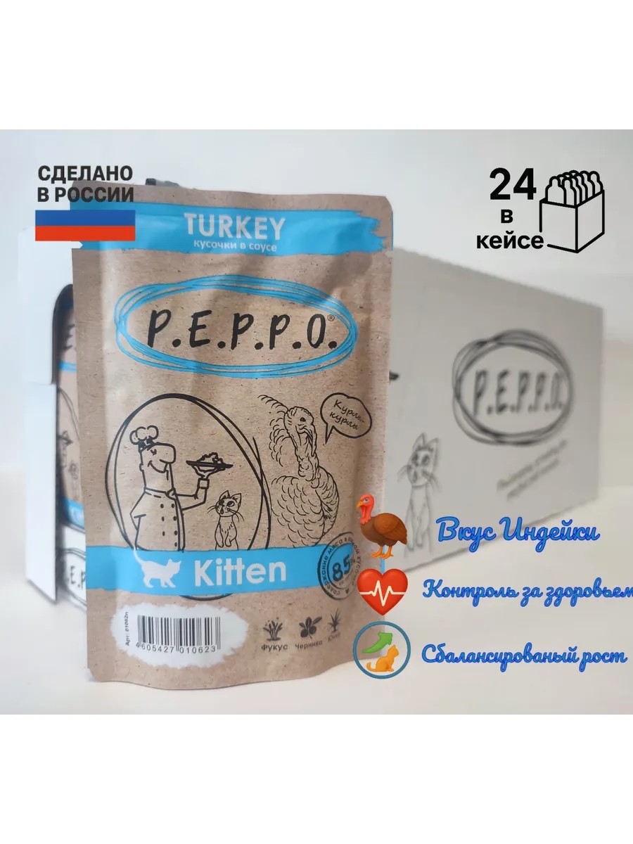 PEPPO P.E.P.P.O. пауч для котят с Индейкой в соусе, 85 г × 24 шт