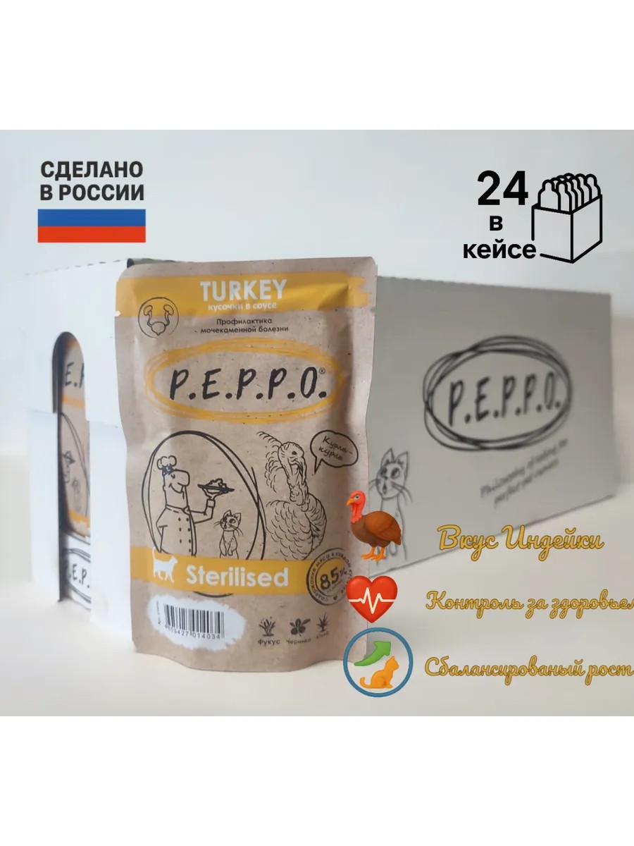 PEPPO P.E.P.P.O. пауч с Индейкой для стерил кошек 85 г × 24 шт