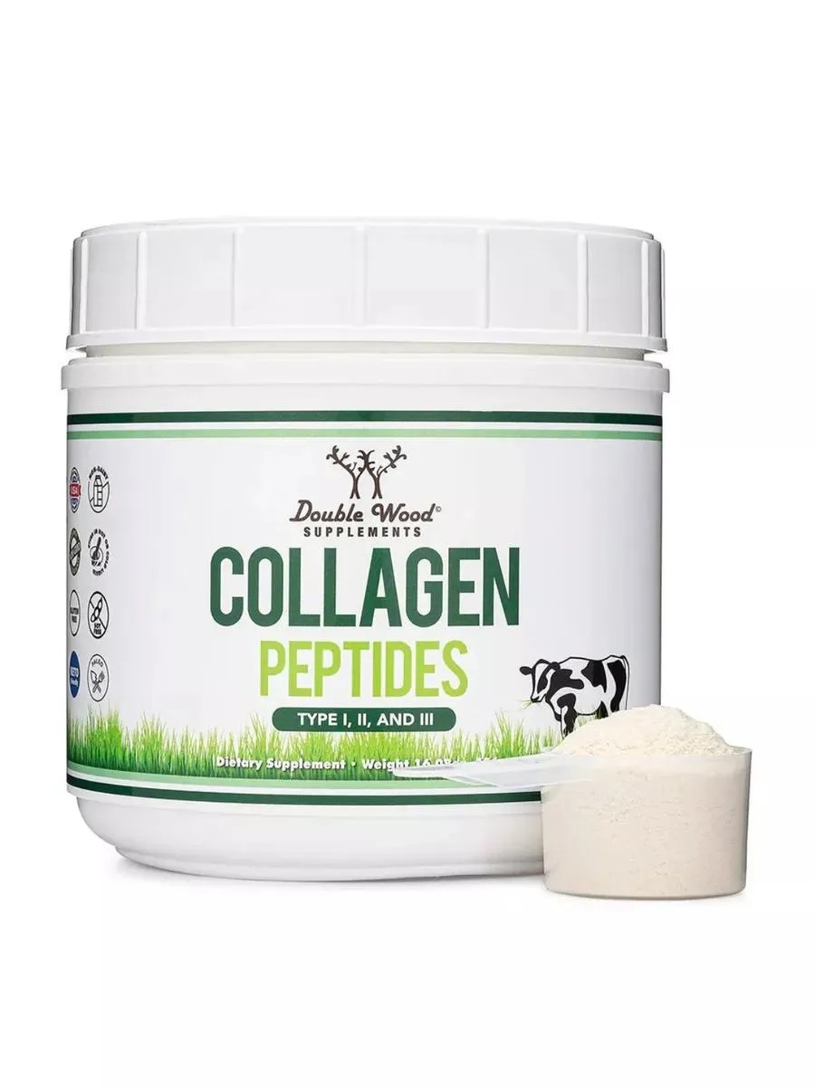 Коллаген является наиболее распространенным белком в организме и является основным компонентом соединительных тканей, обнаруженных во многих частях тела, включая суставы, связки, кожу и мышцы. Коллаген выполняет множество функций в организме, например, помогает структурировать кожу и укреплять кости. Коллаген часто используется в качестве добавки для поддержания здоровья суставов, ногтей, волос, кожи и костей. Коллагеновый продукт Double Wood — это гидролизованный коллаген для лучшего усвоения, представляющий собой смесь коллагеновых пептидов типа 1, 2 и 3. Коллагеновая добавка полностью подходит для кето-диеты и получена от коров, питающихся травой.