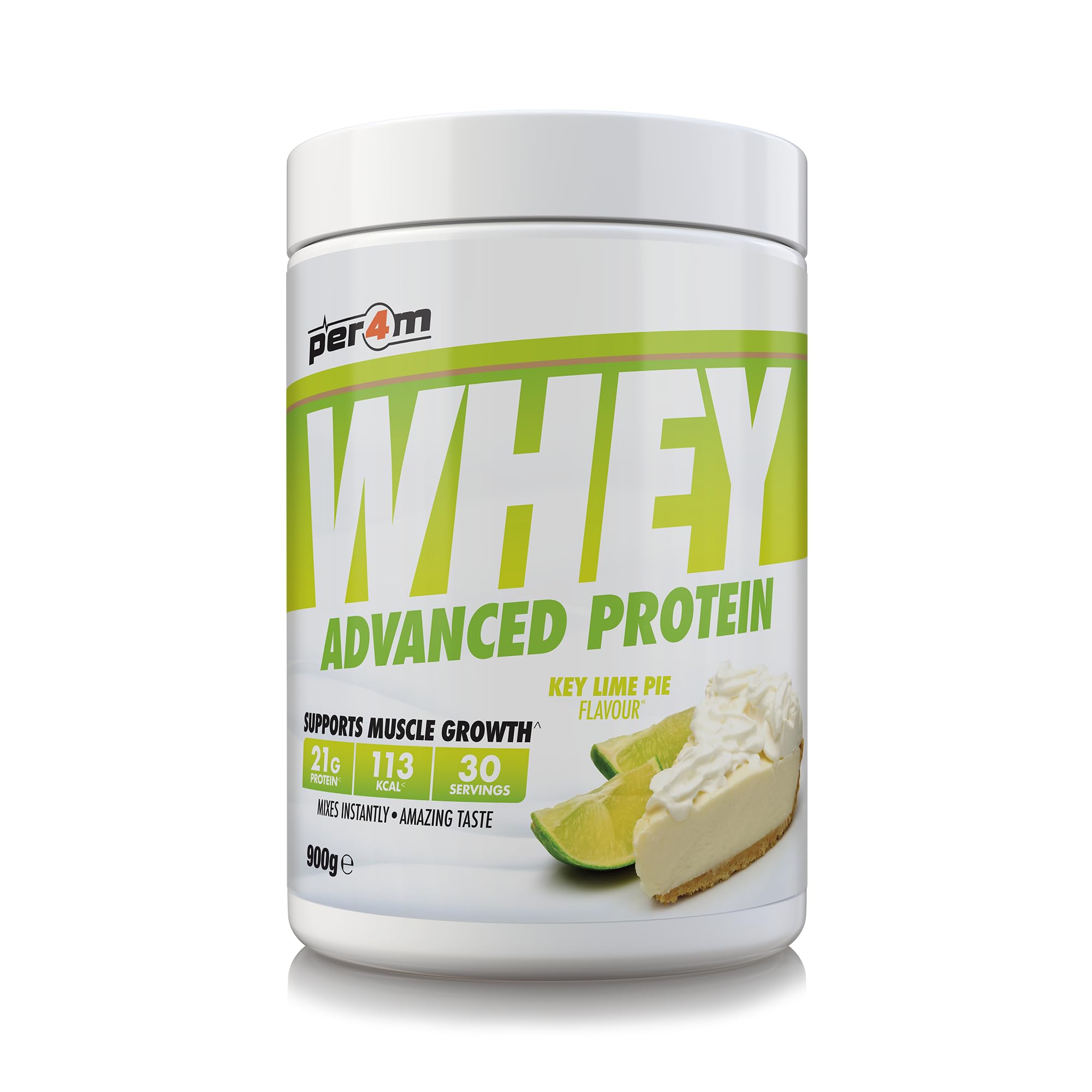 Adequate daily protein intake should be a staple for anyone involved in regular sports and exercise. In sports science, it is widely accepted that athletes, due to their high training levels, may require a higher protein intake to help support the growth and maintenance of lean muscle mass. Consuming 1 to 2 shakes in addition to your daily meals is a great way to boost your overall protein and calorie intake to support your health and performance goals. At PER4M, we believe you shouldn't have to sacrifice taste for results, which is why each serving is packed with highly bioavailable whey and milk proteins available in a wide range of delicious flavors you'll love. Simply mix them with water or milk, or get creative and use them in protein-rich snacks. INGREDIENTS Whey protein concentrate (milk), whey protein isolate (milk), milk protein concentrate, skimmed milk powder, flavoring, thickeners (carboxymethylcellulose, guar gum), sodium chloride, emulsifier (soy lecithin), sweetener (sucralose), color (copper chlorophyllins). MANUFACTURER'S CONTACT INFORMATION Bank House, Market Square, Congleton, CW12 1ET See more30 servings. Helps support lean muscle growth. Mixes instantly. Suitable for vegetarians. 21g of protein per serving.Per4m Whey Protein Key Lime Pie 900gDESCRIPTION DU PRODUIT DESCRIPTION DU PRODUIT L'apport quotidien en protéines devrait être un élément de base pour toute personne impliquée dans un sport et un exercice réguliers. En science du sport, il est largement admis que les athlètes, en raison de leur niveau d'entraînement élevé, peuvent avoir besoin d'un apport plus important en protéines pour aider à soutenir la croissance et le maintien de la masse musculaire maigre. Consommer 1 à 2 shakes en plus de vos repas quotidiens est un excellent moyen d'augmenter votre apport global en protéines et en calories pour soutenir vos propres objectifs de santé et de performance. Chez PER4M, nous pensons que vous ne devriez pas avoir à sacrifier le goût aux résultats, c'est pourquoi chaque portion est remplie de protéines de lactosérum et de lait hautement biodisponibles disponibles dans une large gamme de saveurs délicieuses que vous adorerez. Mélangez-les facilement dans de l'eau ou du lait ou faites preuve de créativité et utilisez-les dans des collations riches en protéines. INGRÉDIENTS Concentré de protéines de lactosérum (lait), isolat de protéines de lactosérum (lait), concentré de protéines de lait, poudre de lait écrémé, arôme, épaississants (carboxyméthylcellulose, gomme de guar), chlorure de sodium, émulsifiant (lécithine de soja), édulcorant (sucralose), colorant (chlorophyllines cuivrées). COORDONNÉES DU FABRICANT Bank House, Market Square, Congleton, CW12 1ET Voir plus30 portions. Aide à soutenir la croissance musculaire maigre. Mélange instantanément. Convient aux végétariens. 21 g de protéines par portion.