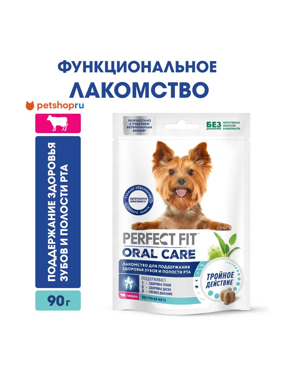 Функциональное лакомство PERFECT FIT (Перфект Фит) с говядиной и добавлением перечной мяты обладает тройным действием: поддерживает здоровье зубов, десен и свежесть дыхания вашей собаки мелкой или миниатюрной породы. Комплекс витаминов и минералов, особая текстура и специальный компонент STPP (триполифосфат натрия) помогают организму поддержать здоровье зубов и полости рта при соблюдении рекомендаций по кормлению. Лакомство обладает подтвержденной эффекитивностью в снижении образования зубного налета, согласно исследованиям.
