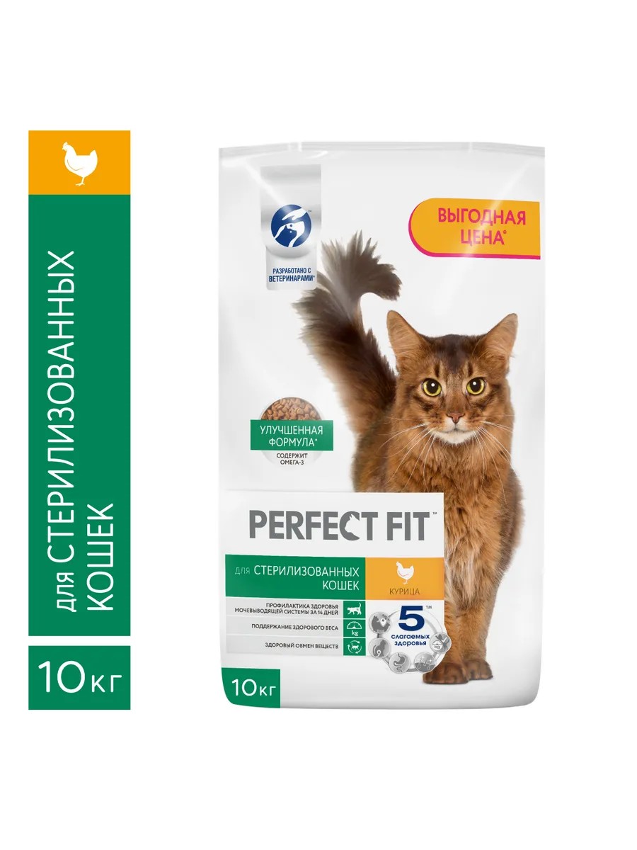 PERFECT FIT Корм для кошек сухой для стерилизованных курица, 10кг