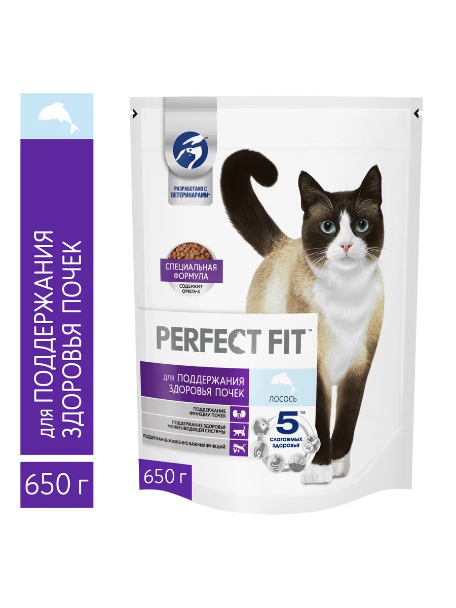 Полное наименование товараКорм сухой для взрослых кошек PERFECT FIT Здоровье почек с лососем, 650г