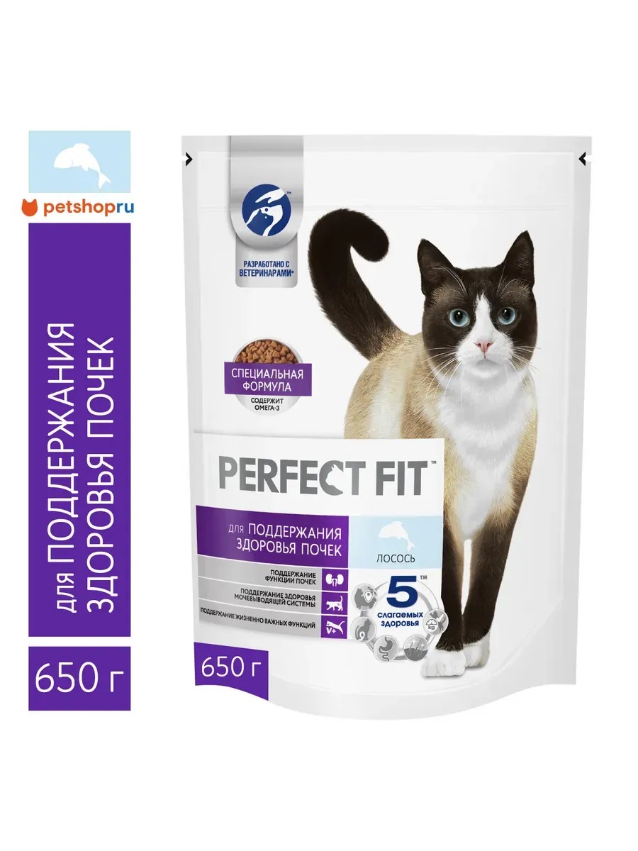 Сухой рацион PERFECT FIT (Перфект Фит) "Здоровье почек" для взрослых кошек с лососем разработан специально для поддержания здоровья почек кошек.