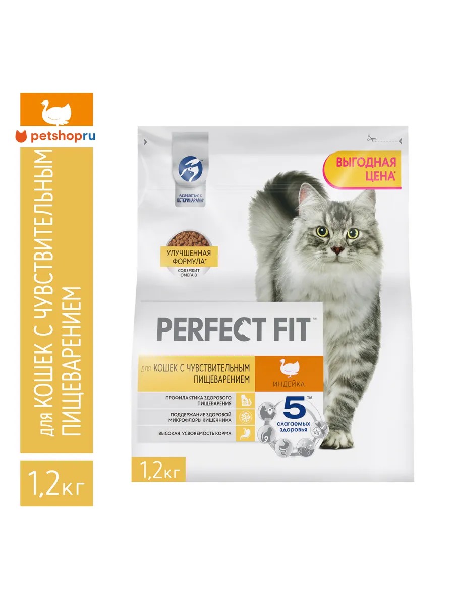 PERFECT FIT Сухой корм для чувствительных кошек, с индейкой, 1.2кг