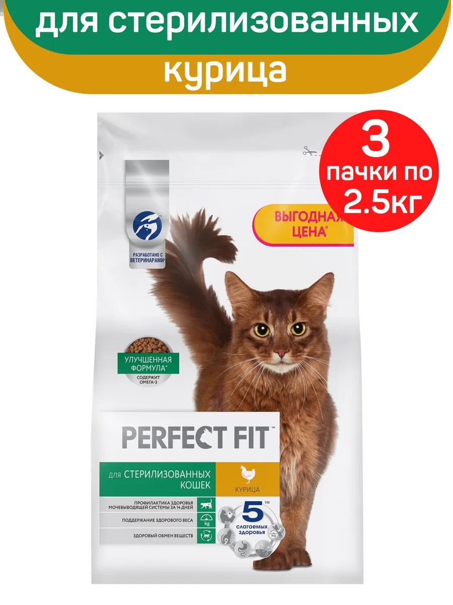 PERFECT FIT Сухой корм для стерилизованных кошек, курица, 3шт по 2.5кг