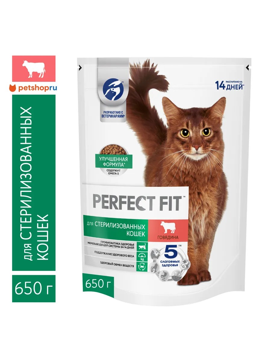 В рационе PERFECT FIT (Перфект Фит) для стерилизованных кошек мы учли потребности организма кошки, прошедшей стерилизацию.