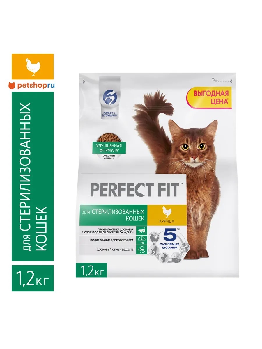 PERFECT FIT Сухой корм для стерилизованных кошек, с курицей, 1.2кг