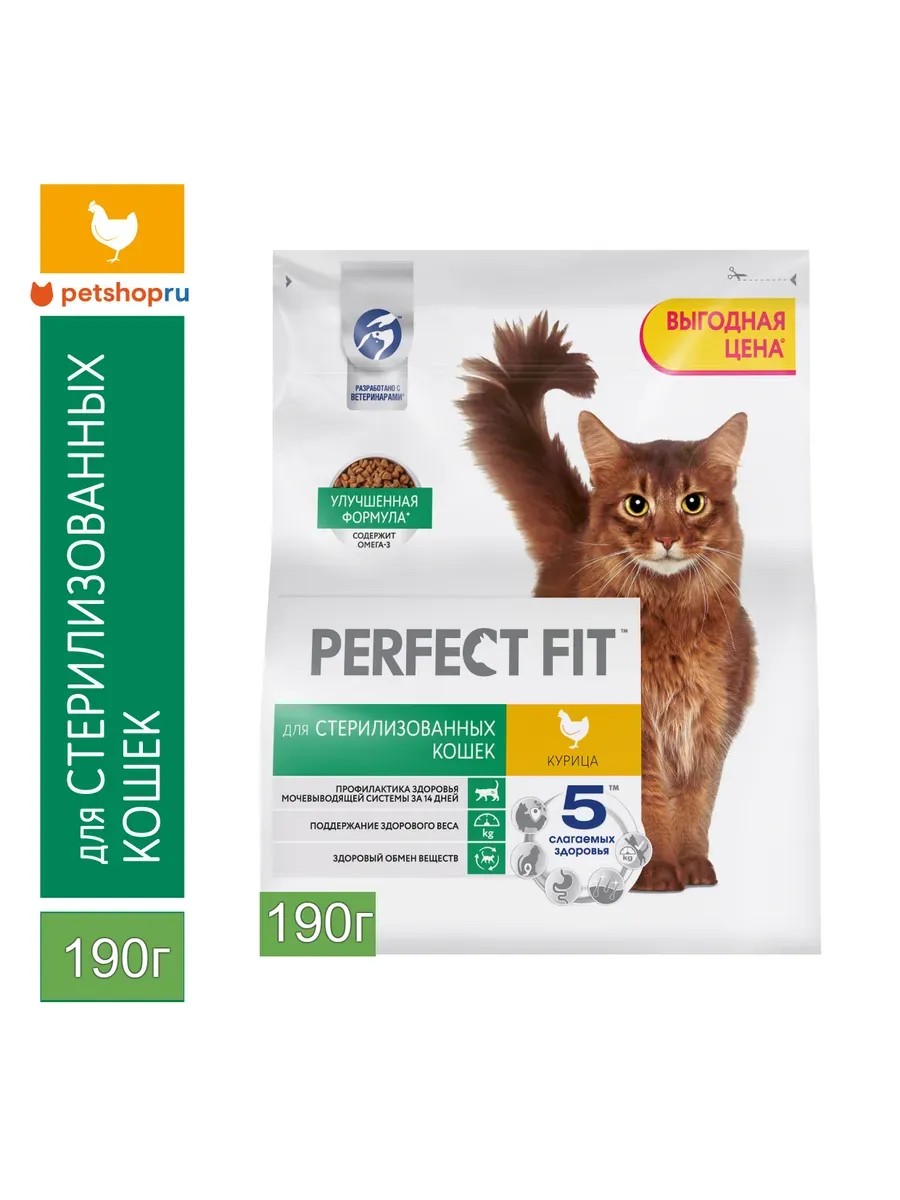 В рационе PERFECT FIT (Перфект Фит) для стерилизованных кошек мы учли потребности организма кошки, прошедшей стерилизацию.