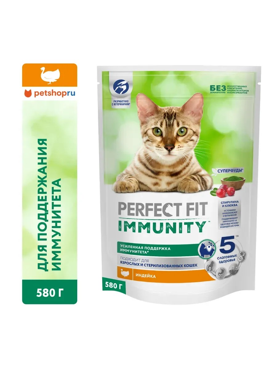 PERFECT FIT Сухой корм Immunity для кошек, с индейкой, 580г