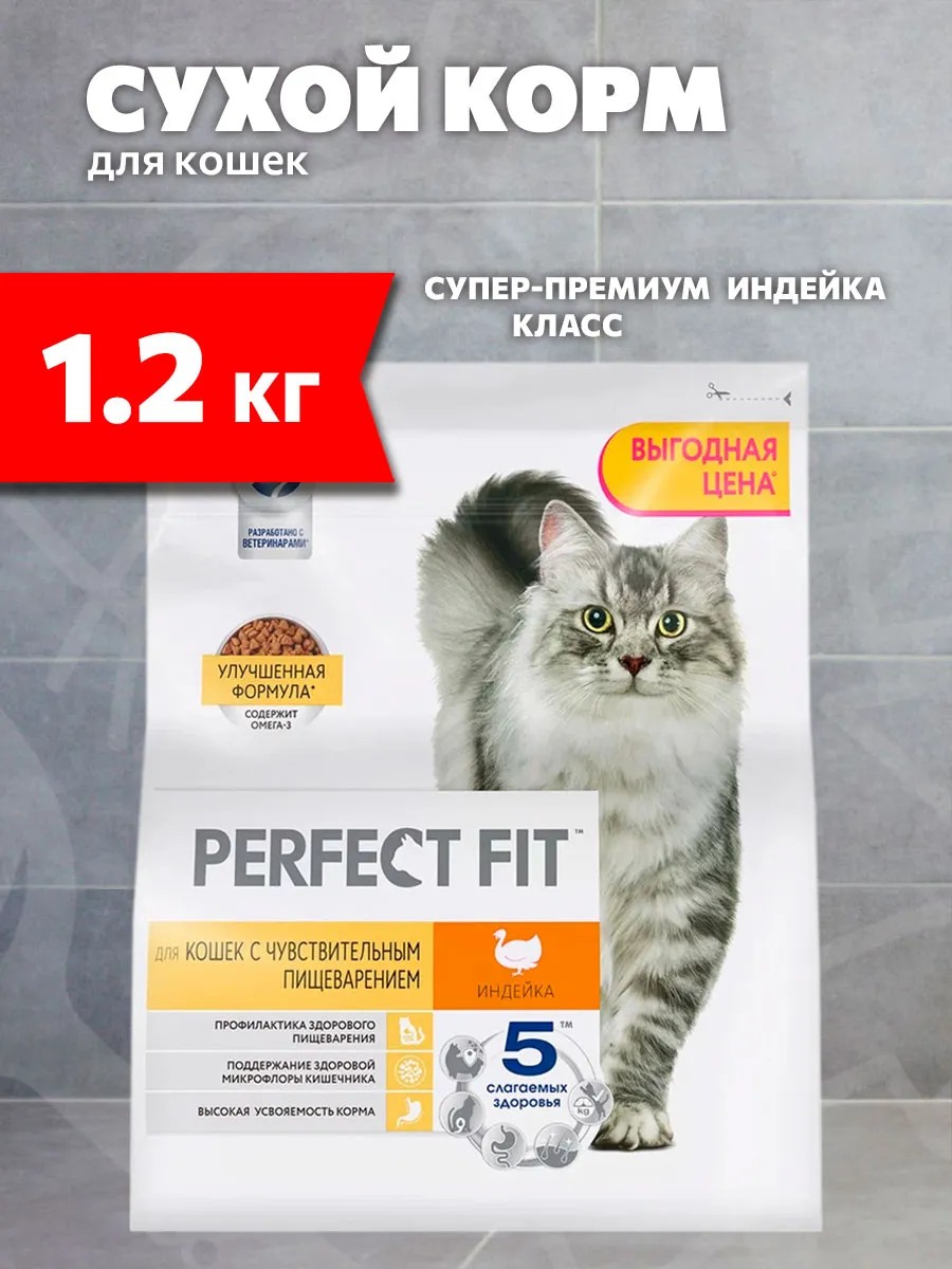 Perfect Fit Корм сухой Sensitive для чувствительных кошек индейка 1,2 кг