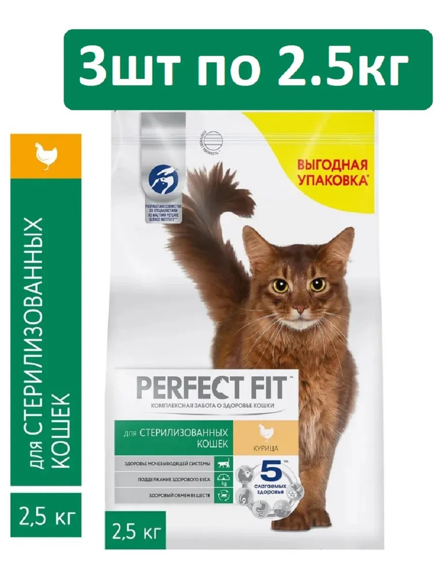 PERFECT FIT Для стерилизованных кошек с курицей 3шт по 2,5 кг