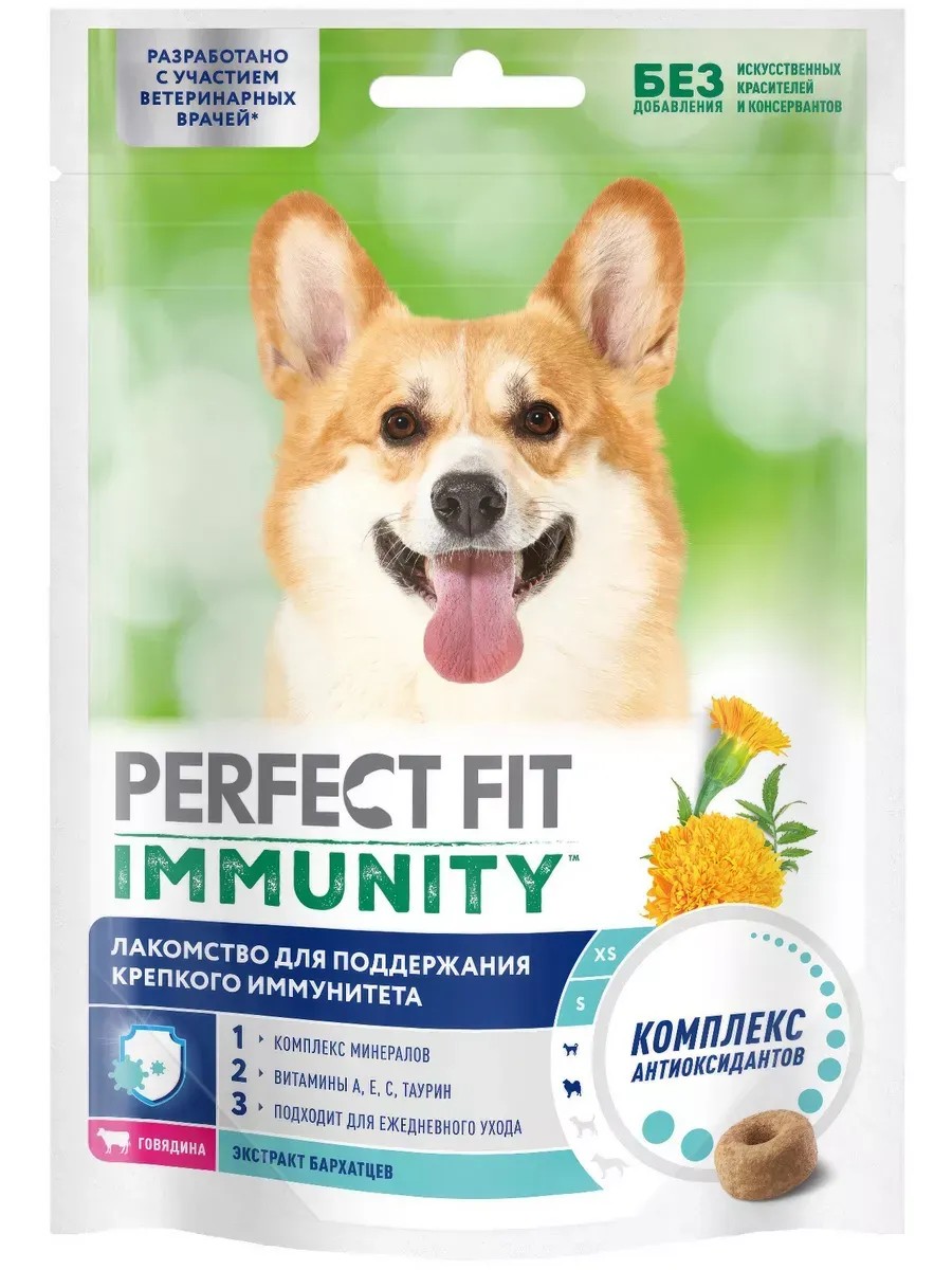 PERFECT FIT Лакомство Immunity для собак, с говядиной и бархатцами, 90 г
