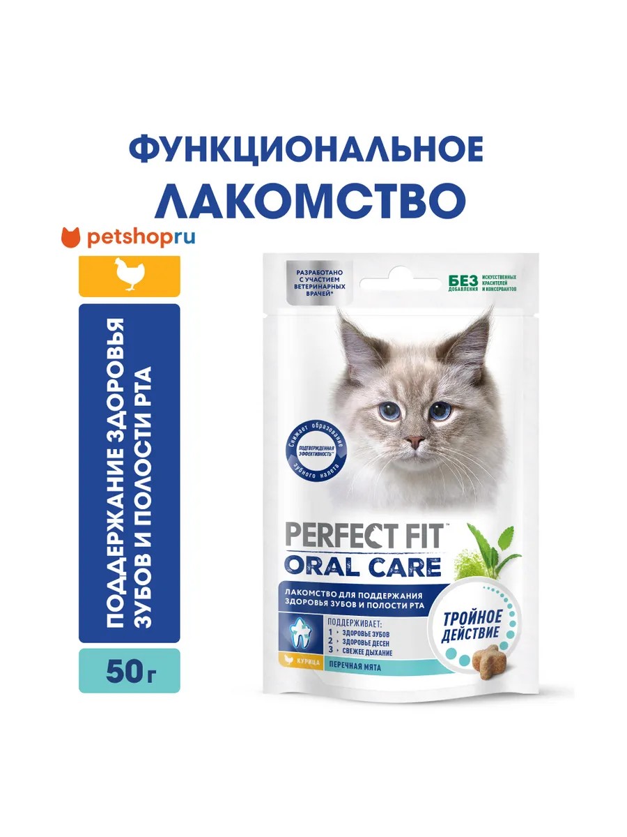 Функциональное лакомство PERFECT FIT (Перфект Фит) ORAL CARE подходит для котят от 4 месяцев и стерилизованных кошек.