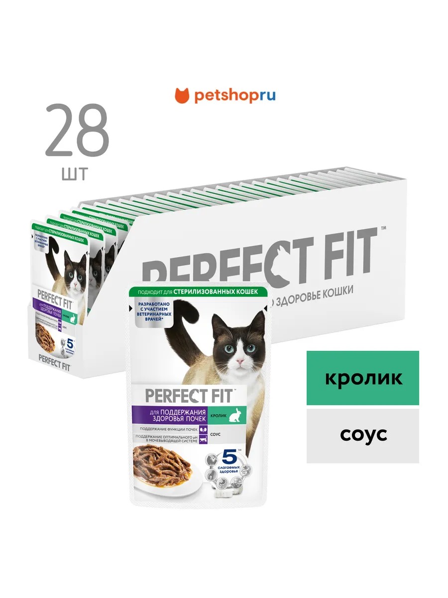 Влажный рацион PERFECT FIT "Здоровье почек" с кроликом в соусе разработан специально для поддержания здоровья почек кошек.