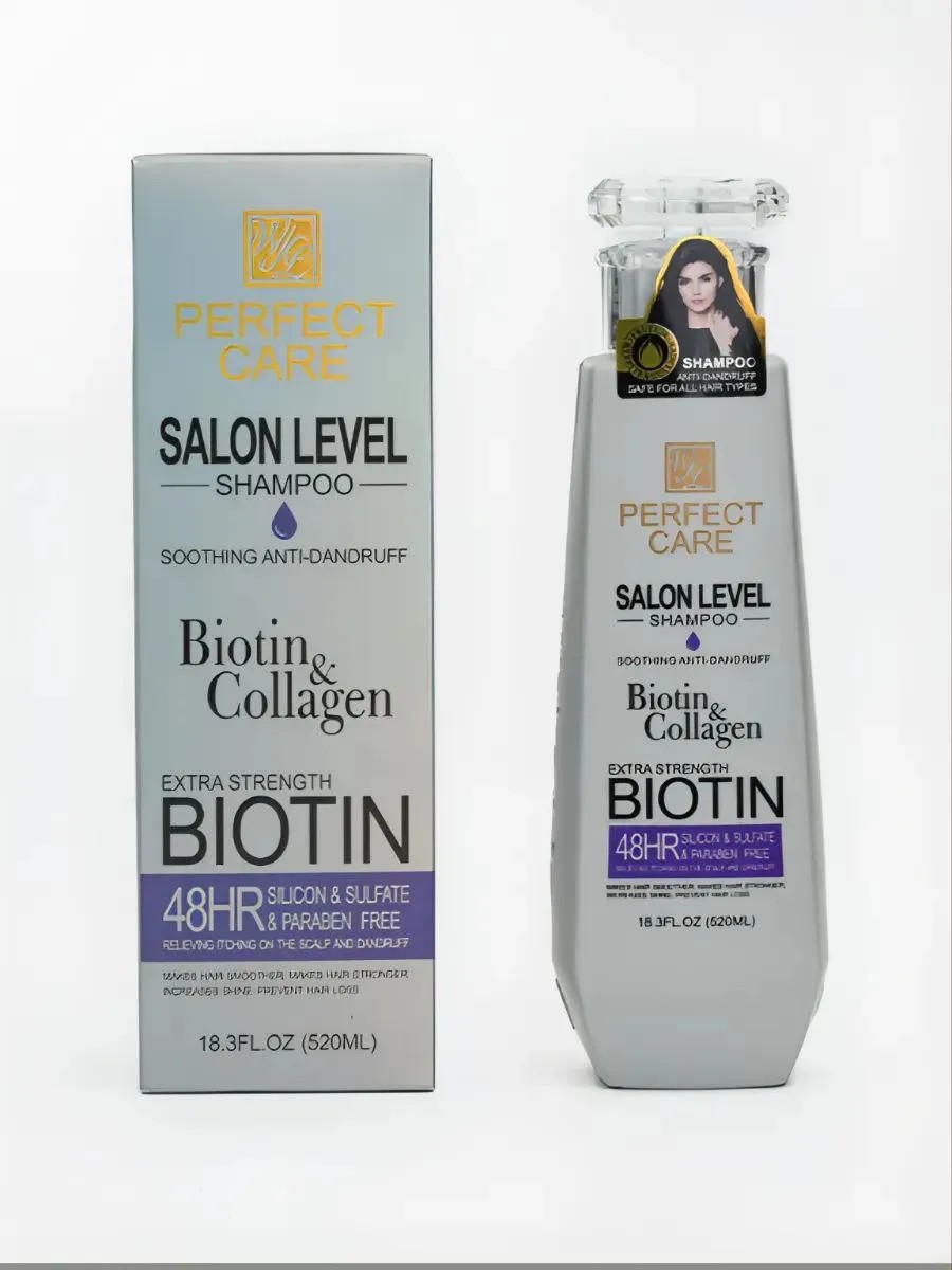 Шампунь PERFECT CARE SALON LEVEL BIOTIN&COLLAGEN SHAMPOO — это профессиональное решение для тех, кто ценит здоровье и красоту своих волос. Обогащенный биотином и коллагеном, он глубоко питает и восстанавливает волосы, делая их более эластичными, блестящими и послушными. Формула шампуня также обладает успокаивающим эффектом, снимая раздражение кожи головы и предотвращая появление перхоти. Регулярное использование PERFECT CARE SALON LEVEL BIOTIN&COLLAGEN SHAMPOO подарит вашим волосам здоровый вид и сияние.