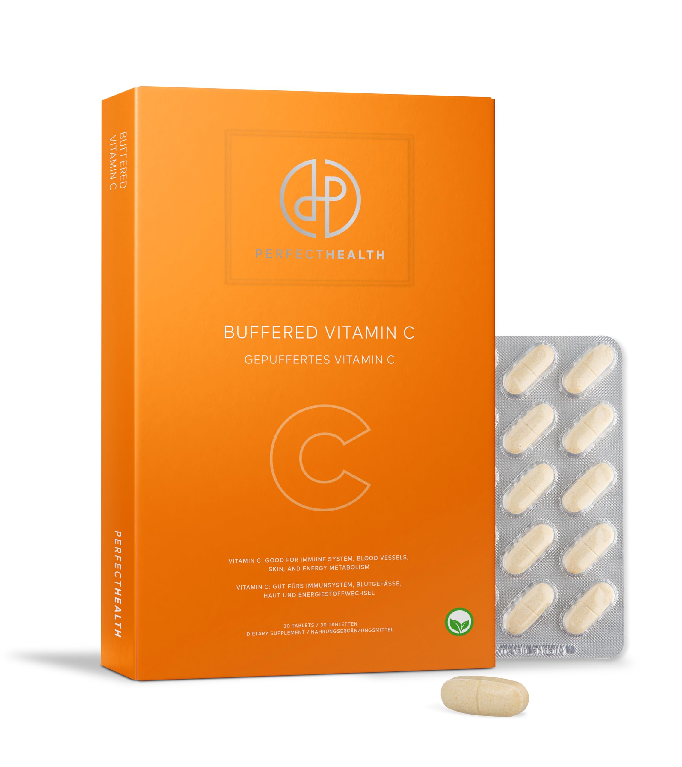Perfect Health Vitamin C 1000mg is a high-dose vegetarian food supplement designed to boost the immune system, reduce fatigue, and support overall health. Its buffered form (calcium ascorbate) is gentle on the stomach and better absorbed than regular ascorbic acid. Each tablet contains 1000mg of vitamin C, complemented by 100mg of bioflavonoids (hesperidin) and 50mg of rosehip (Rosa canina) extract. This natural combination enhances antioxidant effects and stimulates collagen production for skin, bones, teeth, and blood vessels. Vitamin C also supports the nervous system, promotes iron absorption, and helps maintain healthy psychological function. Perfect for periods of stress, fatigue, or seasonal changes. No artificial colors or preservatives. Suitable for vegetarians. 30 tablets – ideal for a one-month supply. Keywords: buffered vitamin C, vitamin C 1000mg, vitamin C tablets, immunity supplement, vegetarian vitamin C, antioxidant, high bioavailability, skin, energy, oxidative stress INGREDIENTS Buffered Vitamin C✓ BEAUTY, JOINTS DEFENSES – Supports collagen formation for skin, bones, teeth, cartilage, and blood vessels. Protects cells against oxidative stress. ✓ PREMIUM VEGETARIAN SUPPLEMENT – Suitable for vegetarians. No artificial additives, scientifically formulated for maximum effectiveness with premium ingredients. ✓ FORMULA ENHANCED WITH PLANT EXTRACTS – Contains 100 mg of bioflavonoids (hesperidin) and 50 mg of rosehip extract for a natural antioxidant synergy. ✓ BUFFERED VITAMIN C 1000 mg – Gentle on the stomach, enriched with calcium ascorbate. Optimal absorption without acidity or digestive discomfort. Superior bioavailability. ✓ IMMUNE SUPPORT ENERGY – Vitamin C contributes to immunity, reduces tiredness and fatigue, and promotes iron absorption. Aids the functioning of the nervous system and promotes a good mood.Perfect Health - Vitamine C 1000mg Tamponnée - 30 Comprimés - Haute Dose - Pour l'Immunité, la Peau, les Os et les Vaisseaux Sanguins - Avec Bioflavonoïdes Églantier - Végétarien 30 comprimes 30.0DESCRIPTION DU PRODUIT DESCRIPTION DU PRODUIT Perfect Health Vitamine C 1000mg est un complément alimentaire végétarien hautement dosé, conçu pour renforcer le système immunitaire, réduire la fatigue et soutenir la santé globale. Sa forme tamponnée (calcium ascorbate) est douce pour l'estomac et mieux absorbée que l'acide ascorbique classique. Chaque comprimé contient 1000mg de vitamine C, complété par 100mg de bioflavonoïdes (hespéridine) et 50mg d'extrait d'églantier (Rosa canina). Cette combinaison naturelle renforce les effets antioxydants et stimule la production de collagène pour la peau, les os, les dents et les vaisseaux sanguins. La vitamine C soutient aussi le système nerveux, favorise l'absorption du fer et aide à maintenir une bonne fonction psychologique. Parfaite pour les périodes de stress, fatigue ou changements saisonniers. Sans colorants ni conservateurs. Convient aux végétariens. Format 30 comprimés – idéal pour une cure d'un mois. Mots-clés : vitamine c tamponnée, vitamine c 1000mg, comprimés vitamine c, supplément immunité, vitamine c végétarienne, antioxydant, haute biodisponibilité, peau, énergie, stress oxydatif INGRÉDIENTS Vitamine C tamponnée✓ BEAUTÉ, ARTICULATIONS DÉFENSES – Soutient la formation du collagène pour la peau, les os, les dents, le cartilage et les vaisseaux. Protège les cellules contre le stress oxydatif. ✓ COMPLÉMENT VÉGÉTARIEN DE QUALITÉ – Convient aux végétariens. Sans additifs artificiels, conçu scientifiquement pour une efficacité maximale avec des ingrédients premium. ✓ FORMULE RENFORCÉE AUX EXTRAITS DE PLANTES – Contient 100 mg de bioflavonoïdes (hespéridine) et 50 mg d'extrait d'églantier pour une synergie antioxydante naturelle. ✓ VITAMINE C TAMPOONNÉE 1000MG – Formule douce pour l'estomac, enrichie en calcium ascorbate. Absorption optimale sans acidité ni gêne digestive. Biodisponibilité supérieure. ✓ SOUTIEN IMMUNITAIRE ET ÉNERGIE – La vitamine C contribue à l'immunité, réduit la fatigue et favorise l'absorption du fer. Aide au fonctionnement du système nerveux et à une bonne humeur.