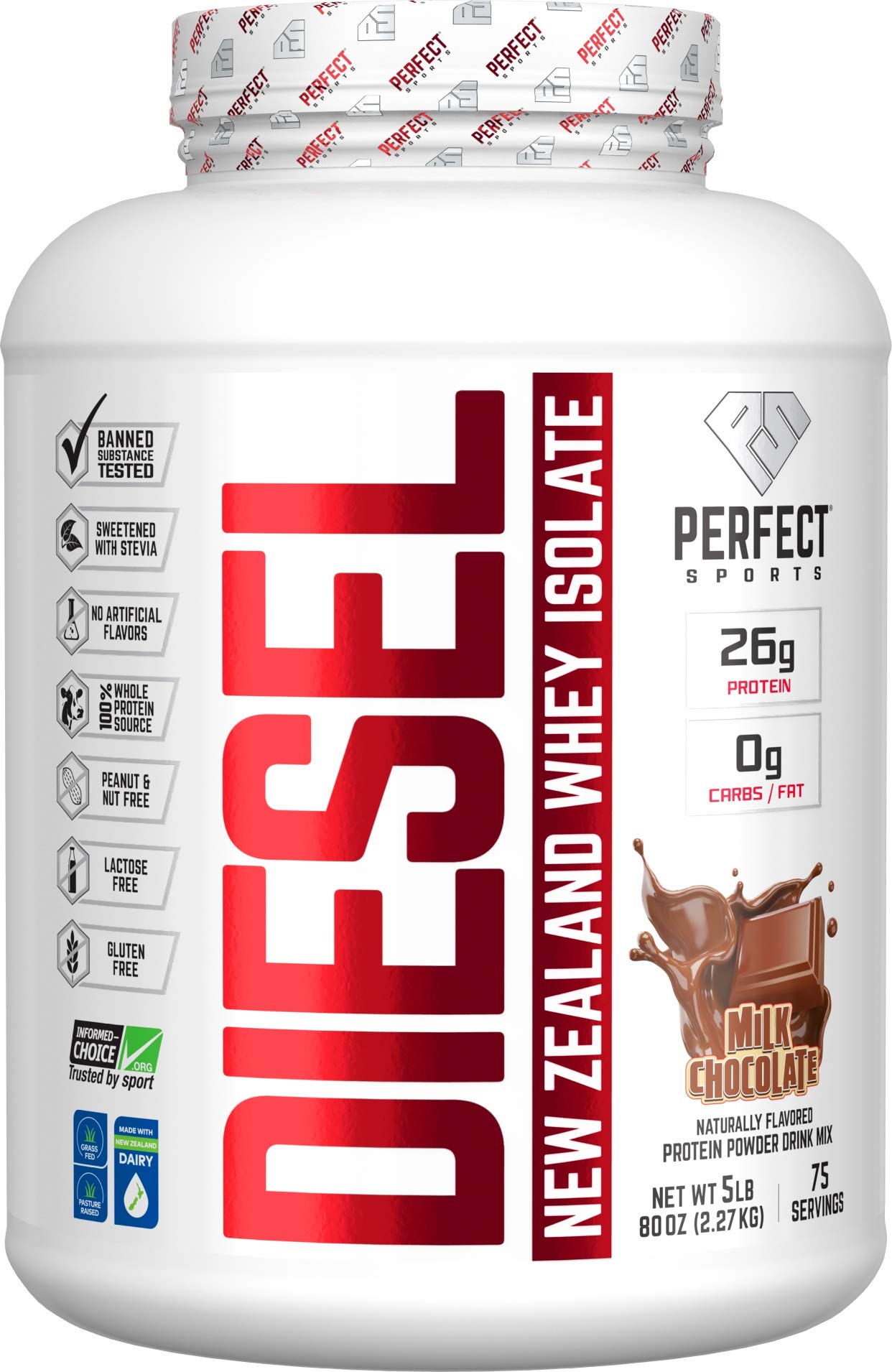 PERFECT Sports Diesel 100% New Zealand Whey Isolate Grass-Fed & Pasture Raised 5LB Milk Chocolate