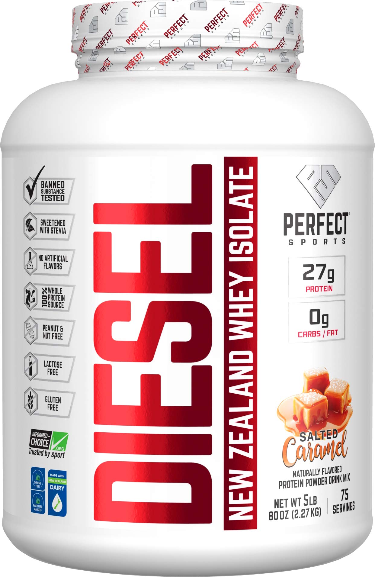 PERFECT Sports Diesel 100% New Zealand Whey Isolate Grass-Fed & Pasture Raised 5LB Salted Caramel