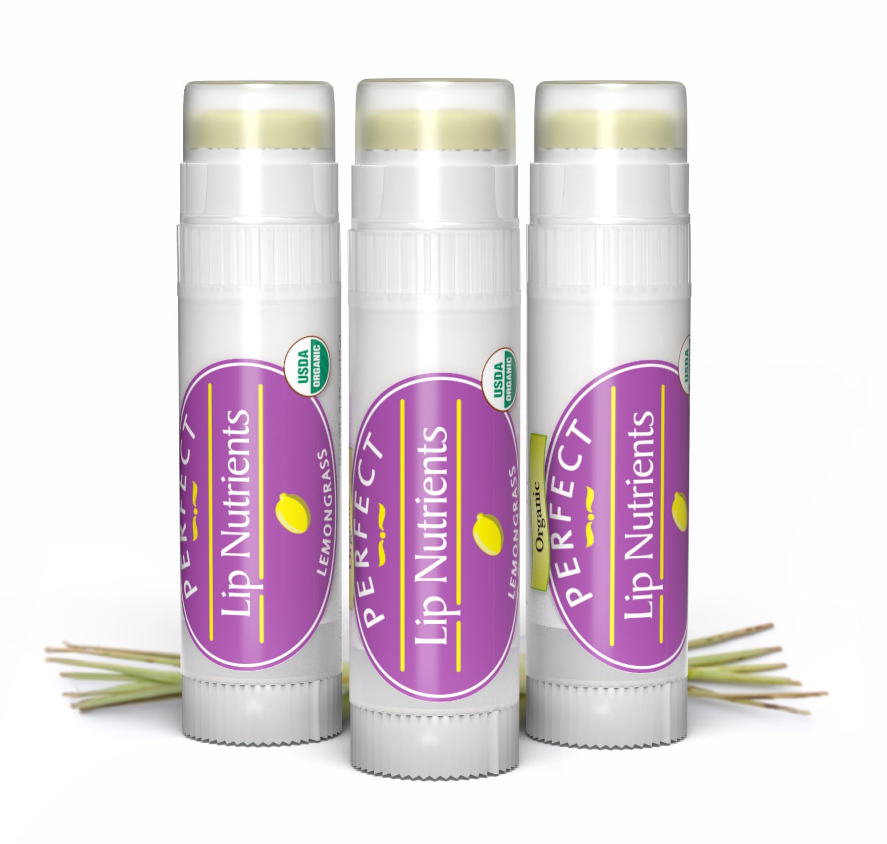 Perfect Supplements - Lip Nutrients Beeswax Lip Balm for Men and Women - With Calendula Cocoa Butter & Vitamin E - Ultra Moisturizing Lip Care for Soft Healthy Lips -3 Pack Lemongrass