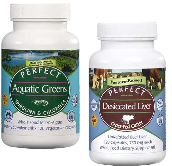 Fuel your body with two foundational superfoods designed to support daily nutrition, energy, and overall vitality — all in one convenient bundle. Daily Greens Ancestral Nutrition, Simplified Modern diets often fall short in delivering the micronutrients your body needs to perform at its best. This bundle pairs Aquatic Greens, a concentrated blend of nutrient-dense aquatic plants, with Desiccated Beef Liver, one of nature's most bioavailable whole-food sources of essential vitamins and minerals. Together, they provide a clean, food-based approach to daily nourishment — without synthetic fillers or unnecessary additives. Aquatic Greens: Concentrated Plant Nutrition Aquatic Greens delivers naturally occurring vitamins, minerals, antioxidants, and phytonutrients from carefully selected aquatic plants. These nutrient-dense greens help support everyday wellness, making it easier to round out your nutrition even on busy days. Ideal for those looking to add more greens to their routine without powders, sugars, or artificial ingredients. Desiccated Beef Liver: Whole-Food Nutrient Support Beef liver has long been valued as one of the most nutrient-rich foods available. Our desiccated liver capsules provide a convenient way to incorporate this traditional superfood into your routine — delivering naturally occurring vitamins and minerals in their whole-food form. Sourced from responsibly raised cattle and gently processed to preserve nutrients, this supplement supports those seeking a food-based alternative to isolated vitamins.CLEAN INGREDIENTS YOU CAN TRUST: No fillers, flow agents, artificial colors, or unnecessary additives — made with carefully sourced ingredients and strict quality standards. SUPPORTS ACTIVE, DEMANDING LIFESTYLES: Ideal for those with busy schedules, workouts, or nutrient gaps looking for clean, foundational support. OCEAN-SOURCED GREENS BLEND: Aquatic Greens deliver marine-based phytonutrients to help round out daily micronutrient intake. GRASS-FED, NUTRIENT-DENSE LIVER: Desiccated beef liver provides naturally occurring vitamins and minerals in a highly bioavailable, food-based form. NATURAL ENERGY VITALITY SUPPORT: Designed to support consistent energy and stamina without caffeine, stimulants, or added sugar.