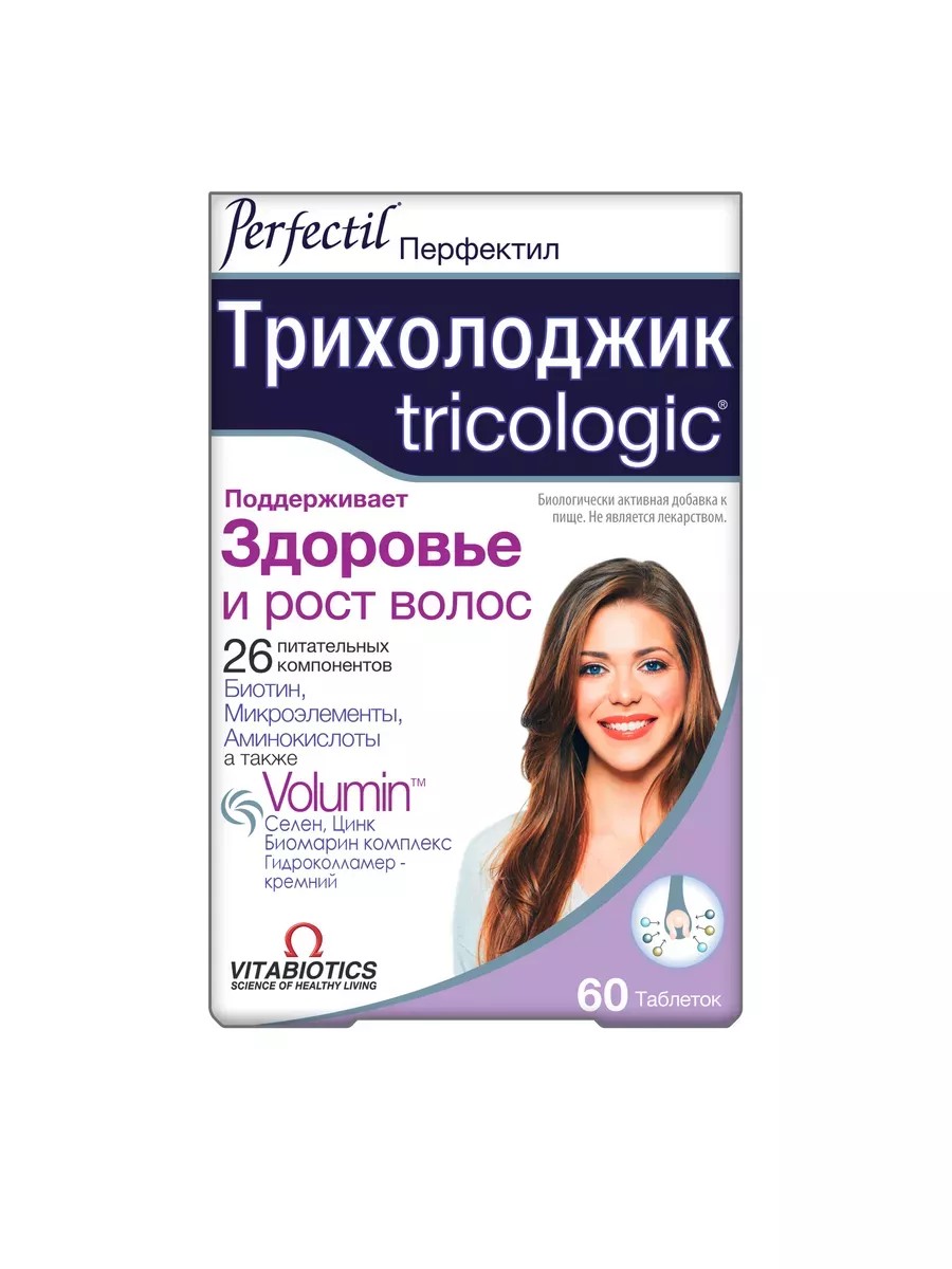 В состав Перфектил Трихолоджик входит бета-каротин - именно он способствует нормальной секреции сальных желез. С его помощью можно предупредить заболевания кожи головы и волос. Витамин С поможет в процессе синтеза волокнистых структур кожи. Он способствует лучшему усвоению железа. Антиоксидантом в этом составе выступает витамин Е - он поддерживает регенерацию кожи. Добиться обновления структуры кожи и волос помогает L-Метионин, который содержит серу. Этот минерально-витаминный комплекс косметологи рекомендуют применять женщинам, которые по той или иной причине страдают от активного выпадения волос. Состав: морской коллаген (гидроколламер), цистин, инозитол, метионин, экстракт виноградных зерен,витамин D3, Е 20, С, В1 (Тиамин), (Рибофлавин), В3 (Ниацин), В6 (фолиевая кислота), витамин В12, биотин, пантотеновая кислота, железо, магний, цинк, йод, медь, селен, марганец, хром, кремний, натуральные каротины. Способ применения: взрослым и детям старше 14 лет по 1 таблетке в день во время основного приема пищи, не разжевывая, запивая 1 стаканом воды или любого холодного напитка. Не превышать указанную дозировку. Продолжительность приема - 1 месяц. При необходимости прием можно повторить.