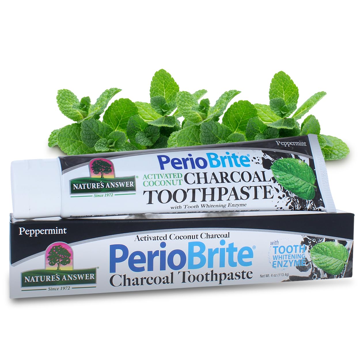 PERIOBRITE Activated Charcoal Toothpaste (Pack of 3) 4 oz. Nature's Answer Tooth Whitening Plaque Removing Peppermint Flavored Stain Remover | Fluoride Free
