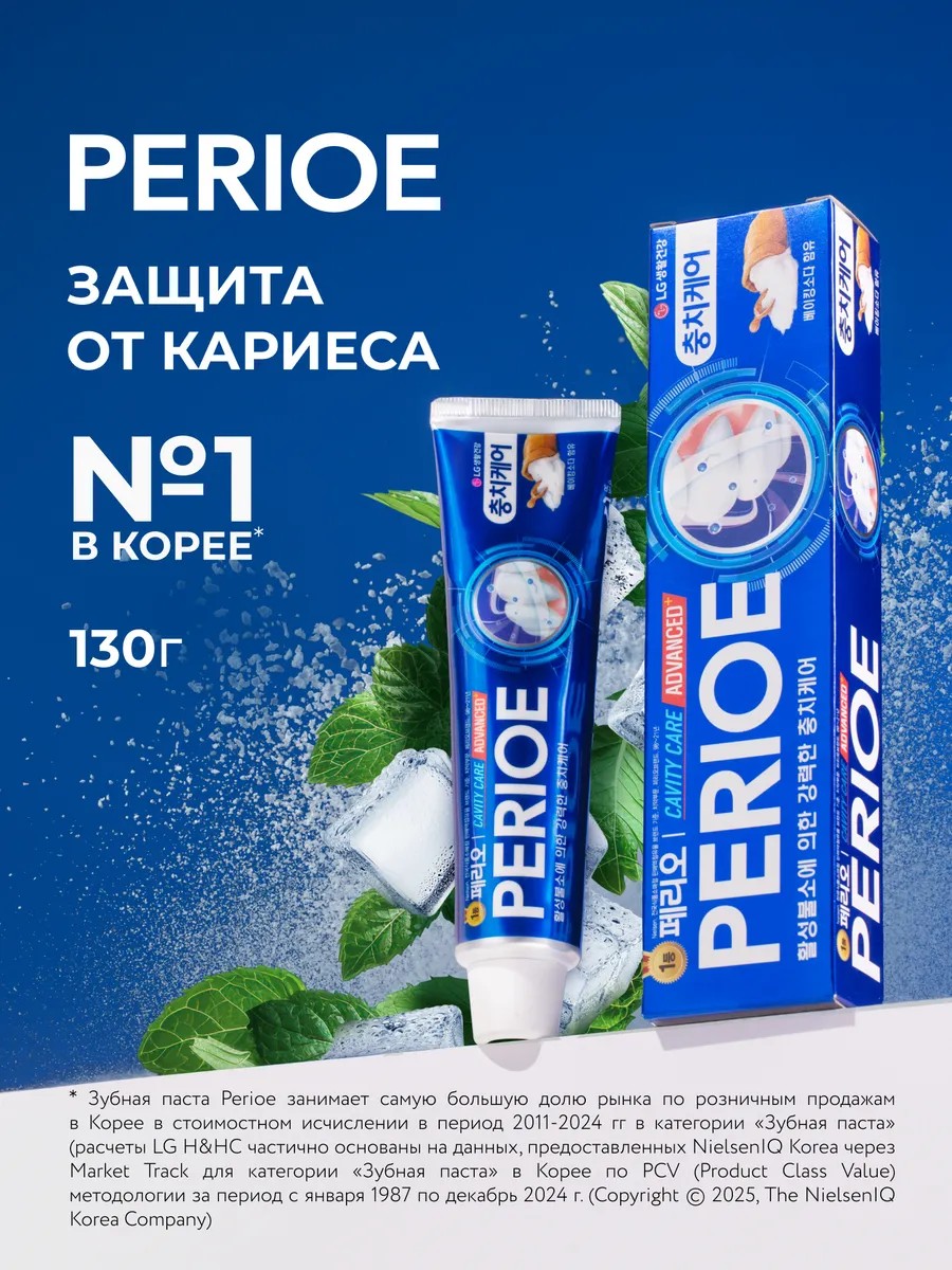 Perioe Cavity Care Advanced Korean toothpaste is a universal hygiene toothpaste with calcium, baking soda, and fluoride (1000 ppm) that effectively fights cavities, removes plaque, promotes gum health, and freshens breath. This toothpaste has a mild mint flavor and is economical to use. It provides high-quality daily oral and dental care and is suitable for the whole family. Baking soda in Perioe Cavity Care toothpaste gently and safely whitens teeth, reduces oral acidity, preventing enamel erosion, and fights bacteria that cause bad breath and gum disease. Xylitol restores the acid-base balance and promotes the development of normal microflora in the oral cavity. Vitamin E relieves inflammation, moisturizes, and accelerates tissue regeneration in the oral mucosa. The soft tube with a no-twist, one-push cap holds 130g of toothpaste, an average of 25% more than a standard toothpaste tube. For environmental reasons, all Perioe toothpastes are produced without foil protection. The compact Perioe Cavity Care tube is convenient to take with you on vacation, business trips, or leave in your work drawer, so you can take care of your beautiful smile and fresh breath whenever you need it. For daily care of your teeth and gums, choose the best – a natural and safe toothpaste from the Perioe range from LG, a leader in innovation and the #1 manufacturer in Korea!