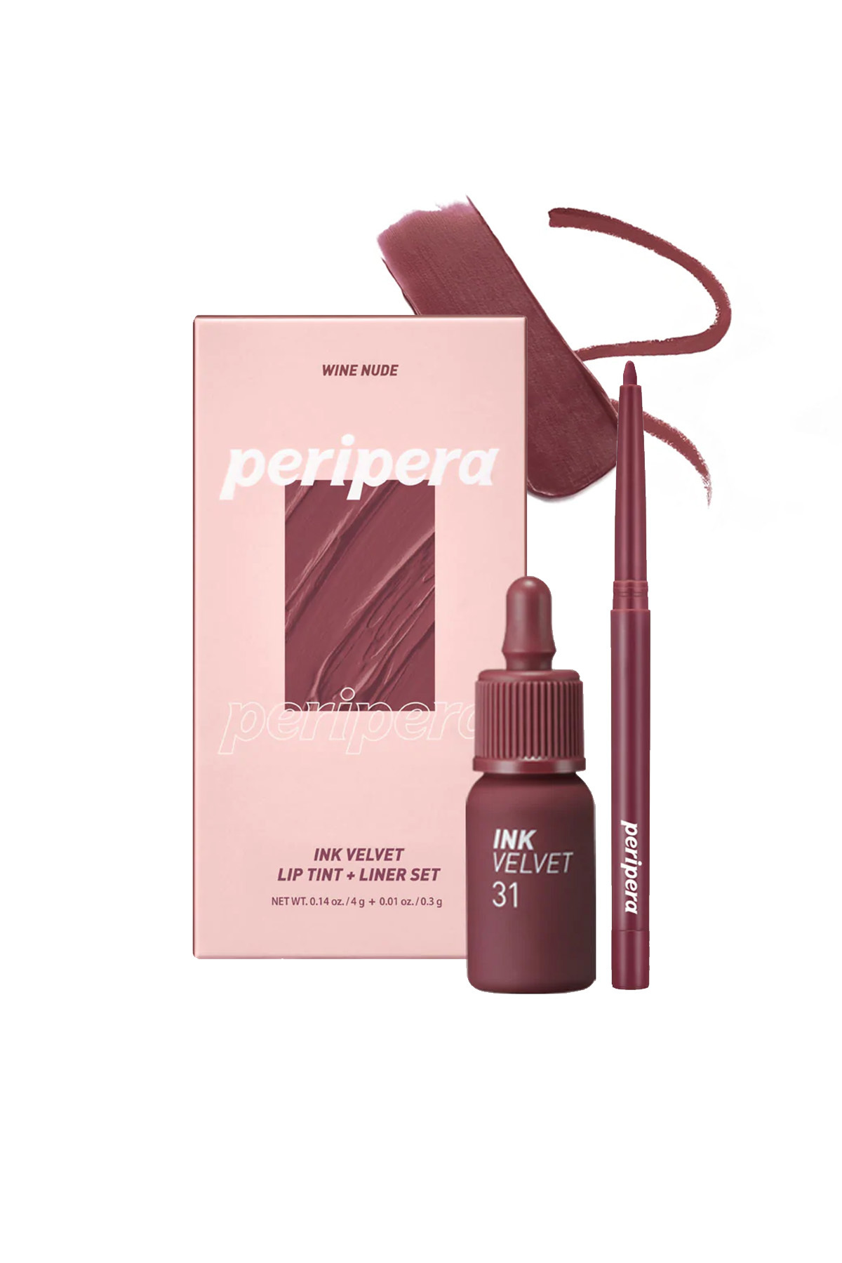 PERIPERA Velvet Look Tint and Lip Liner Peripera Ink Velvet + Lip Liner Set (002 Wine Nude)