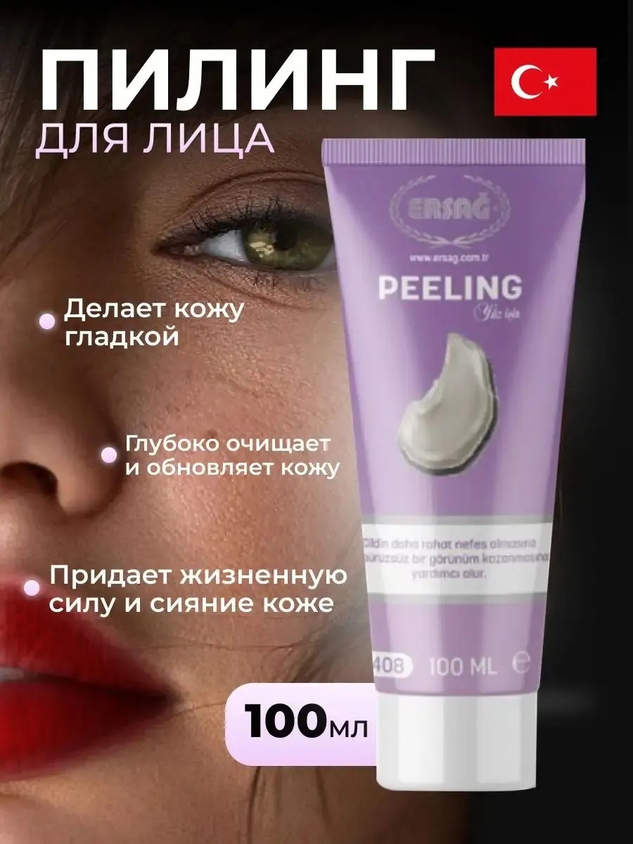 Пилинг для лица поможет коже легче дышать, а так же приобрести безупречный вид. Особенности; Удаляя излишки кожного сала , жира и грязи с поверхности кожи, пилинг эрсаг помогает очистить кожу от нежелательных угрей, облегчит ее дыхание , а так же придать коже гладкий вид, при этом не травмируя ее. Придавая жизненную силу и яркость, пилинг помогает поддерживать формирование гладкой текстуры кожи. Пилинг для лица – самая распространенная процедура в сфере косметологии. Слово пилинг происходит от английского peel, что значит «счищать». Суть процедуры заключается в очистке кожи путем устранения слоя омертвевших клеток. Такие действия стимулируют естественные процессы регенерации, заставляющие клеточные структуры делится быстрее. В результате эпидермис быстрее обновляется, лицо выглядит ухоженным и здоровым. Способ применения; Прополоскав лицо водой нанесите пилинг на кожу лица круговыми массажными движениями в течение нескольких минут. Затем смойте водой.