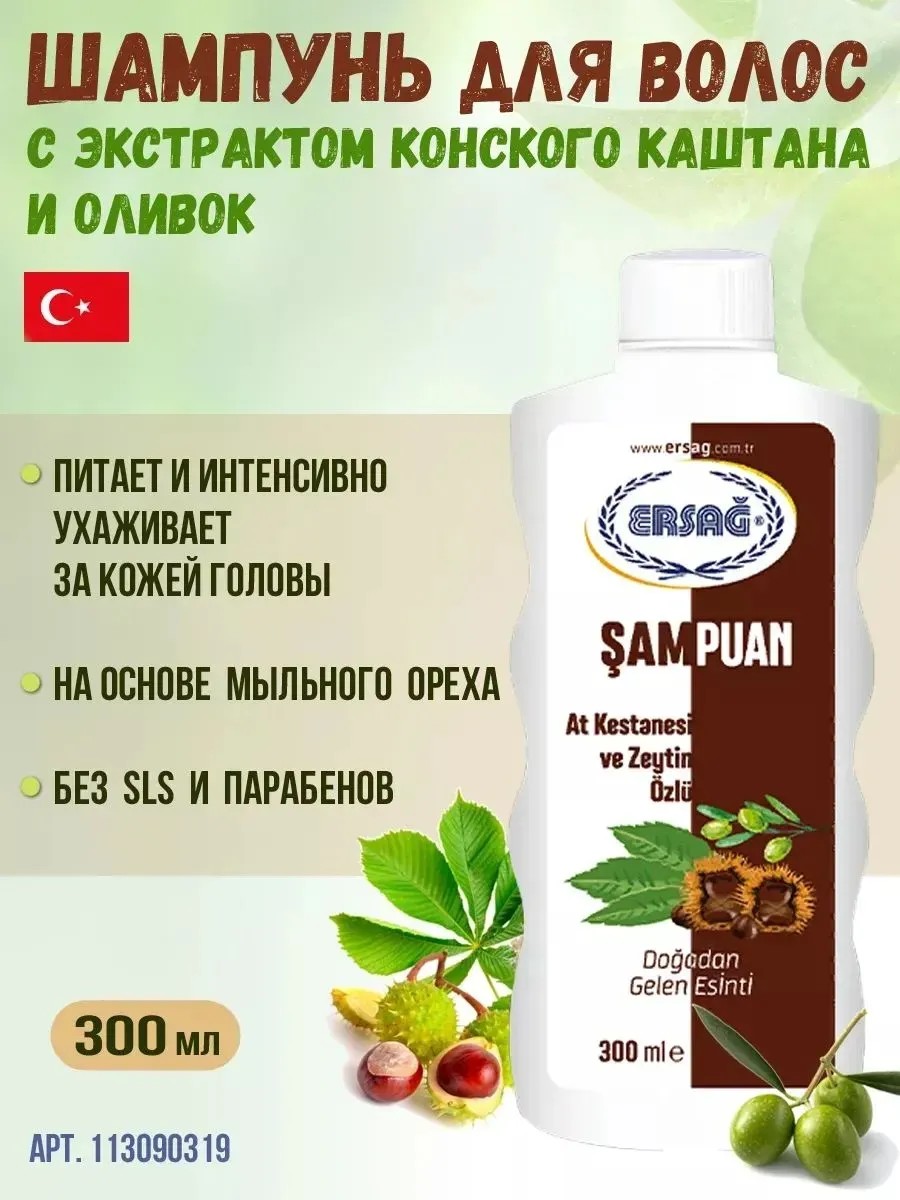Шампунь из конского каштана от Эрсаг - это идеальное решение для тех, кто ищет натуральный уход за волосами. Этот шампунь содержит экстракт конского каштана, известного своими питательными и укрепляющими свойствами. Этот производитель уверяет в том, что регулярное использование шампуня поможет улучшить структуру волос, укрепить волосяные луковицы и предотвратить выпадение волос.