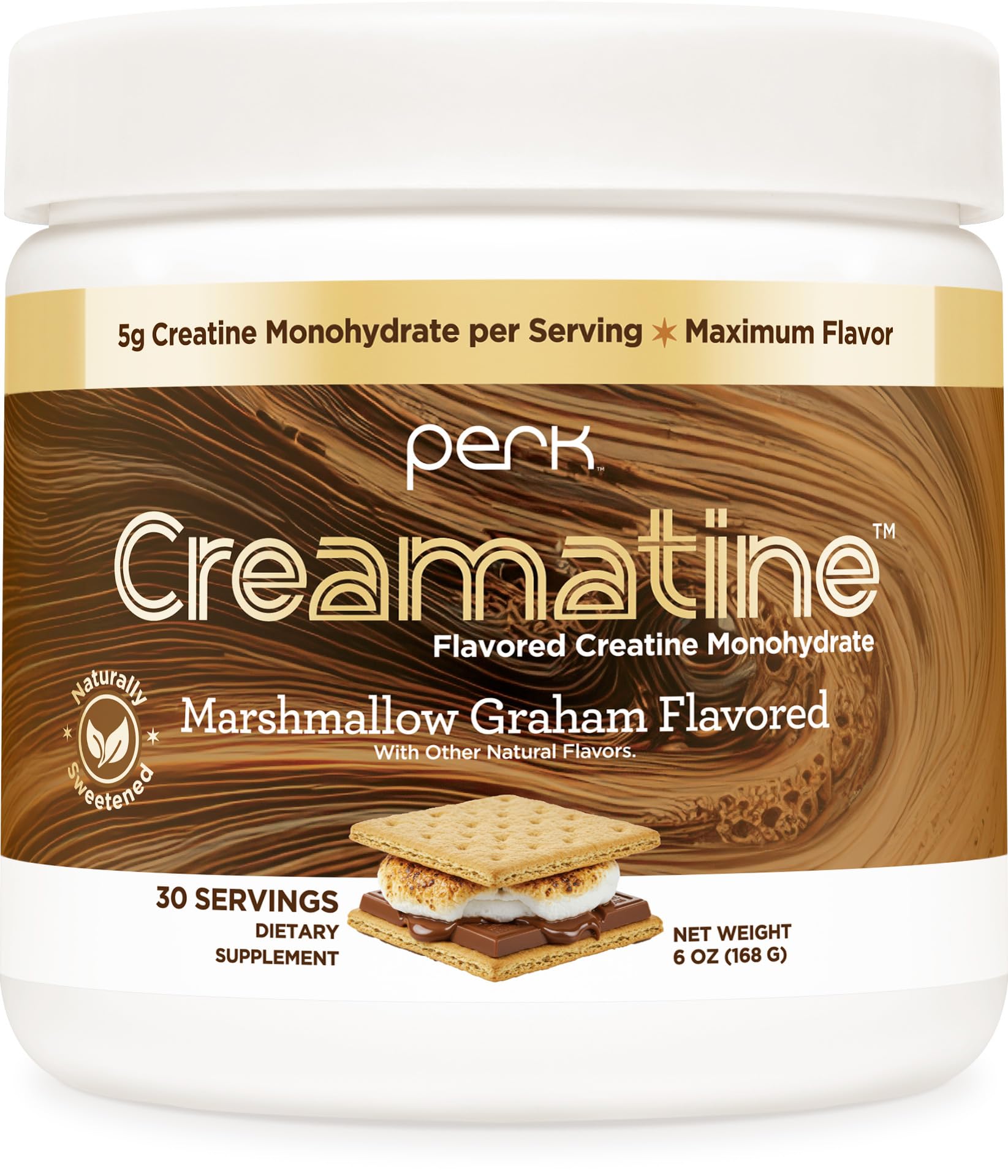 Perk Creamatine (Marshmallow Graham) 30 Servings - Flavored Creatine Monohydrate 5g of Creatine per Serving Naturally Sweetened Zero Sugar Gluten-Free Soy-Free