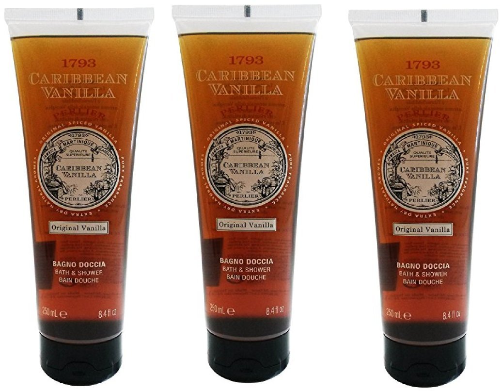 Perlier:"1783 Caribbean Vanilla" Bath & Shower Original Vanilla Scent 8.4 Fluid Ounces (250mL) Bottle (Pack of 3) Italian Import