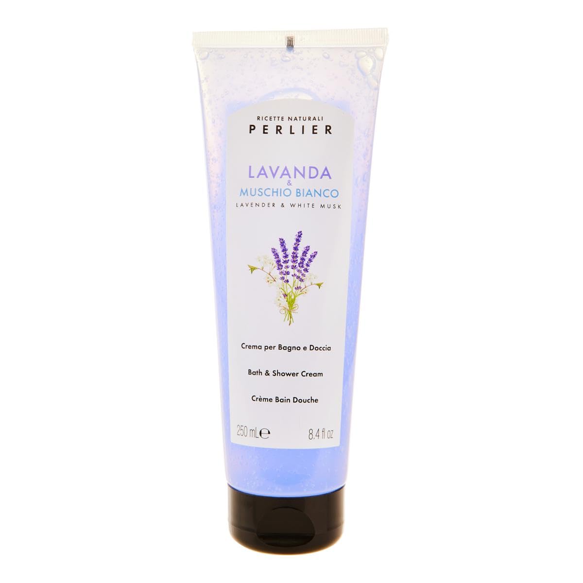 Perlier Bath and Shower Cream Lavender White Musk 8.4 fl oz This ultra-rich European cleaner transforms your bath and shower experience into a calming retreat. A luxurious bath and shower cream that leaves your skin feeling soft, smooth and delicately scented.