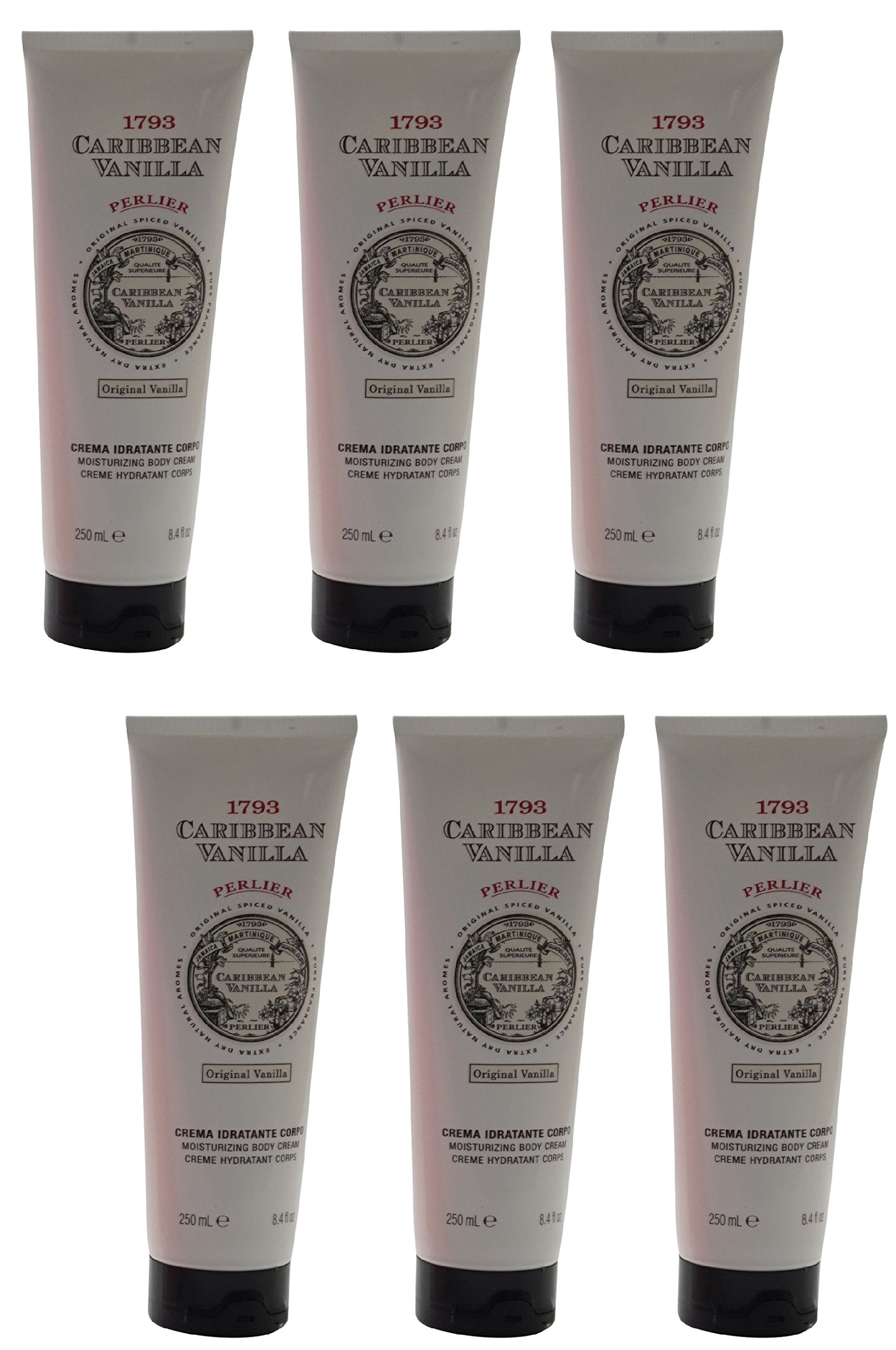 Perlier: Caribbean Vanilla Moisturizing Body Cream 8.4 Fluid Ounces (250mL) Tube Pack of 6 Italian Import