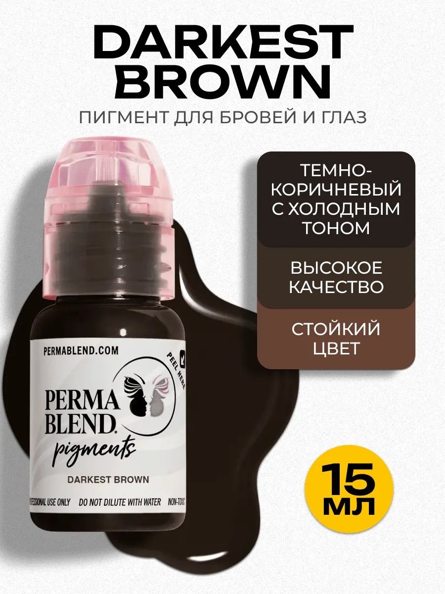 Perma Blend Darkest Brown pigment is a high-quality pigment for permanent makeup of eyebrows, eyelids, and eyes. Darkest Brown is considered the darkest of all colors. It is based on red pigment, resulting in a rich, dark brown color with the addition of a corrector, making it ideal for Asian skin types. Volume: 15 ml.