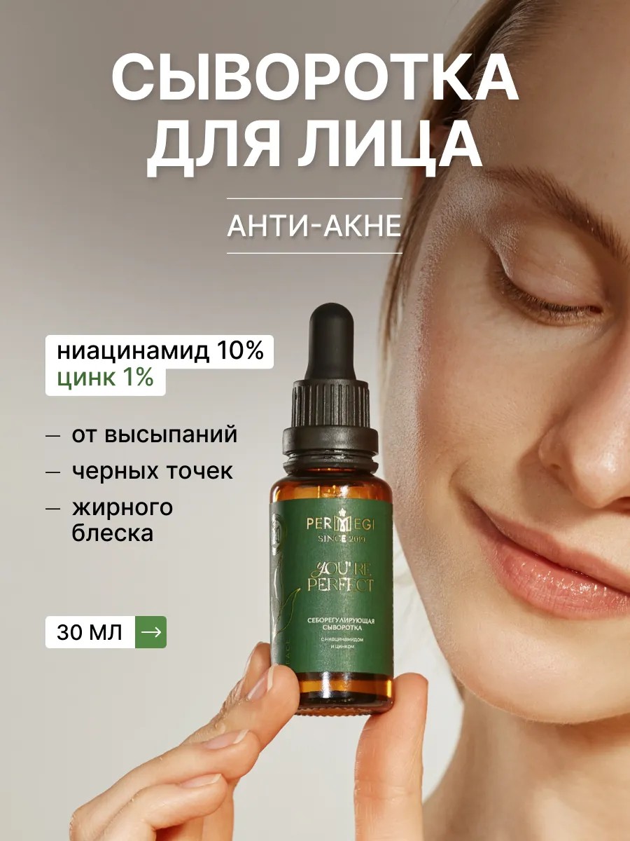 Себорегулирующая сыворотка для лица с ниацинамидом и цинком.